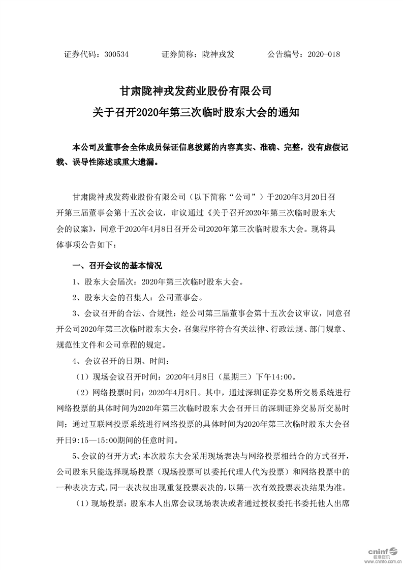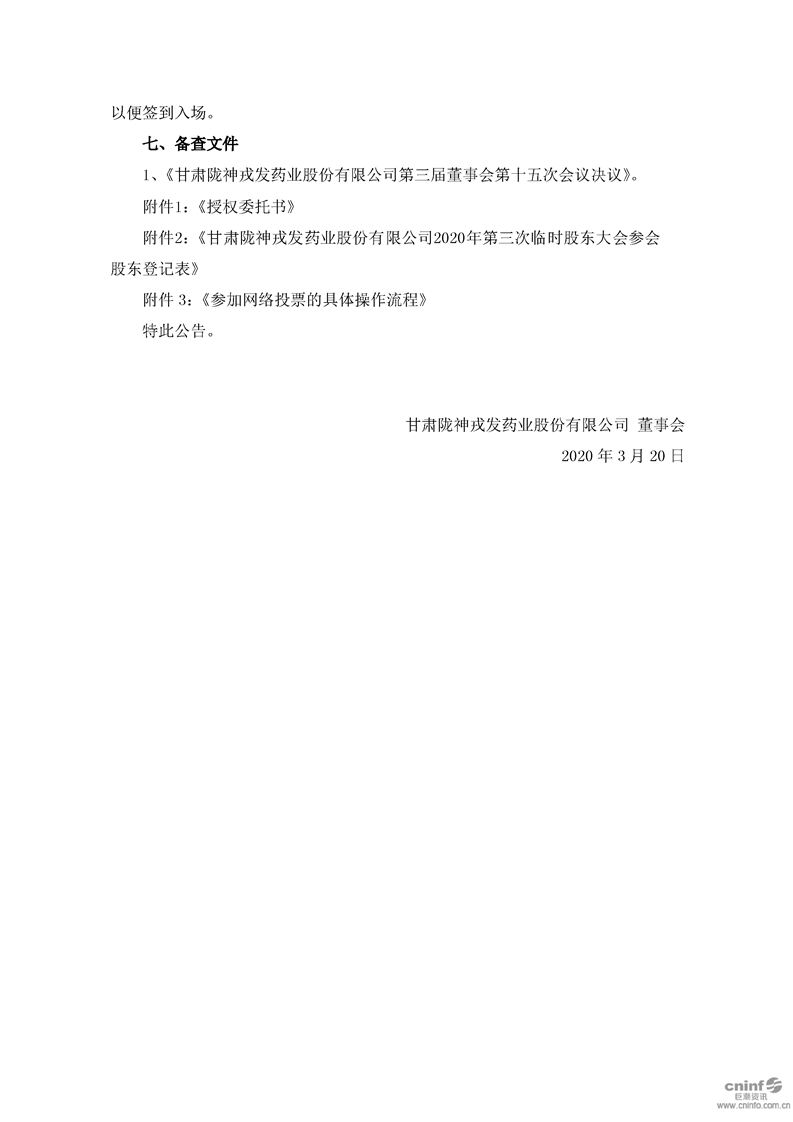 關于召開2020年第三次臨時股東大會的通知