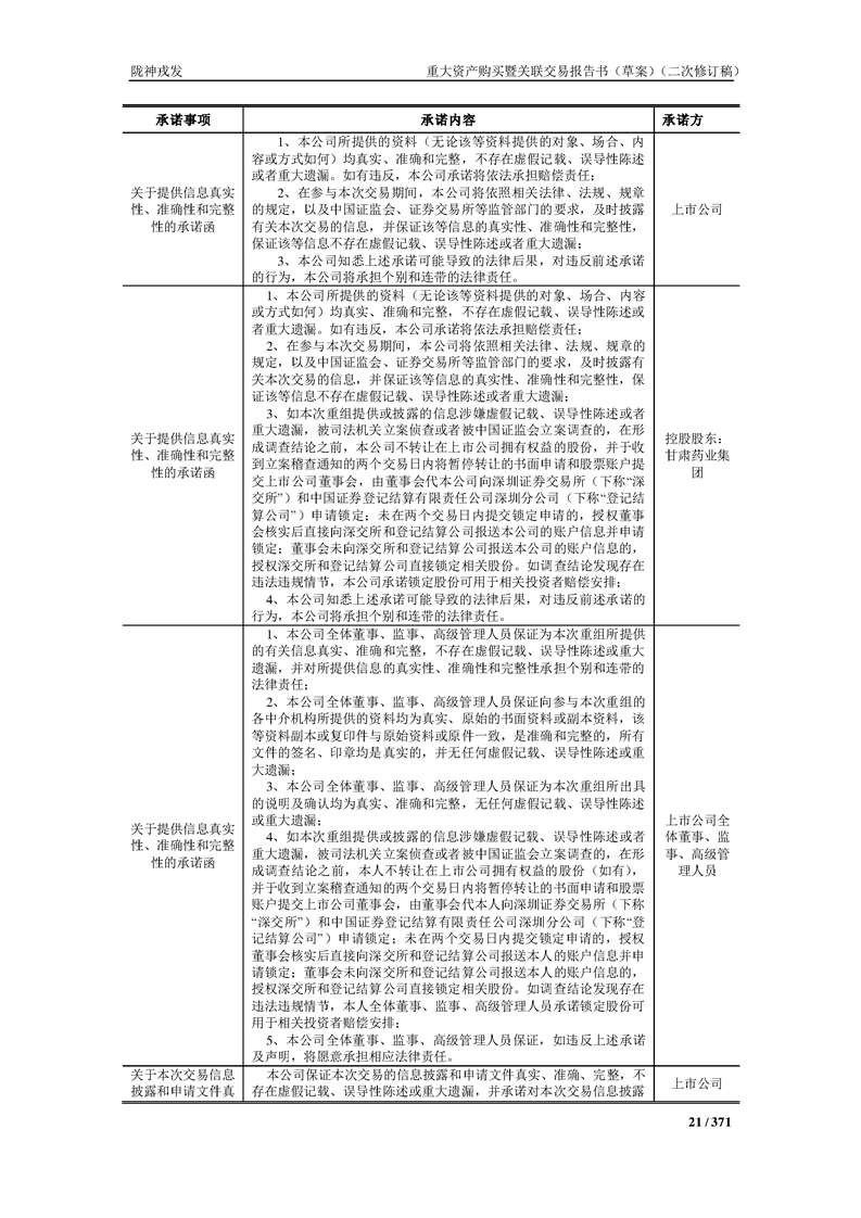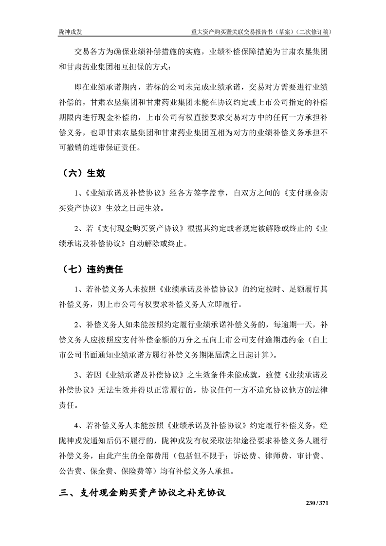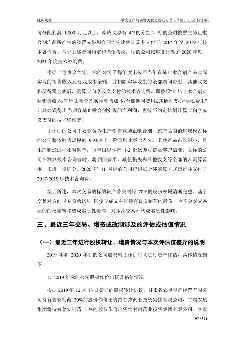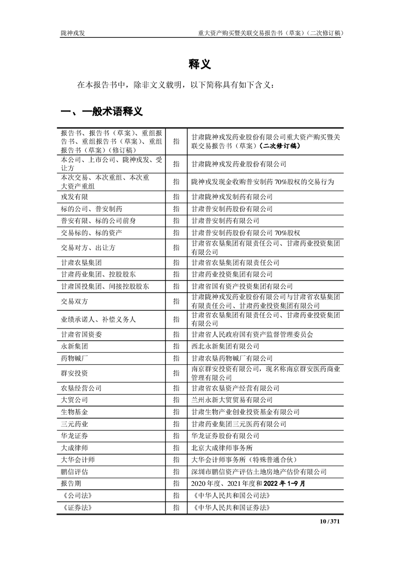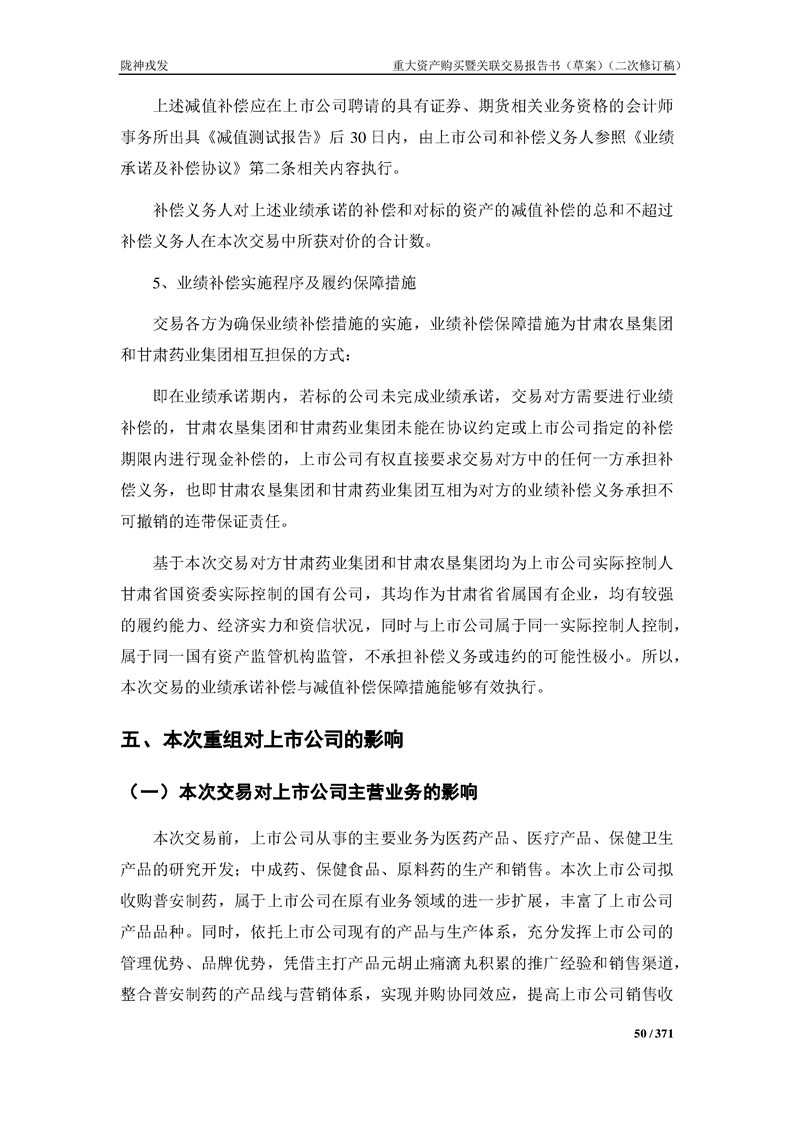 甘肅隴神戎發(fā)藥業(yè)股份有限公司重大資產(chǎn)購買暨關(guān)聯(lián)交易報告書(草案)摘要(二次修訂稿)