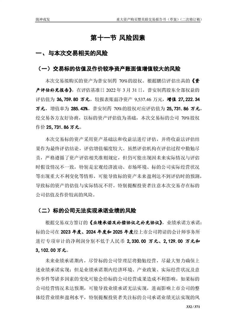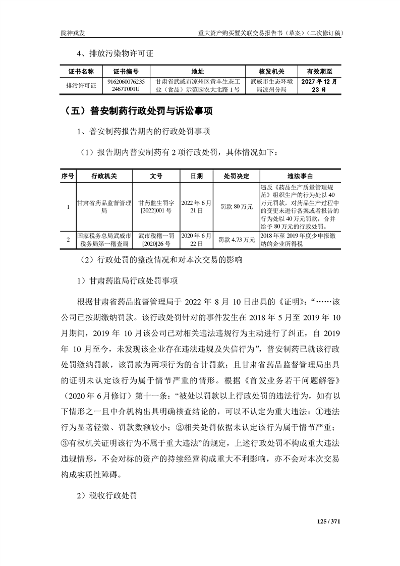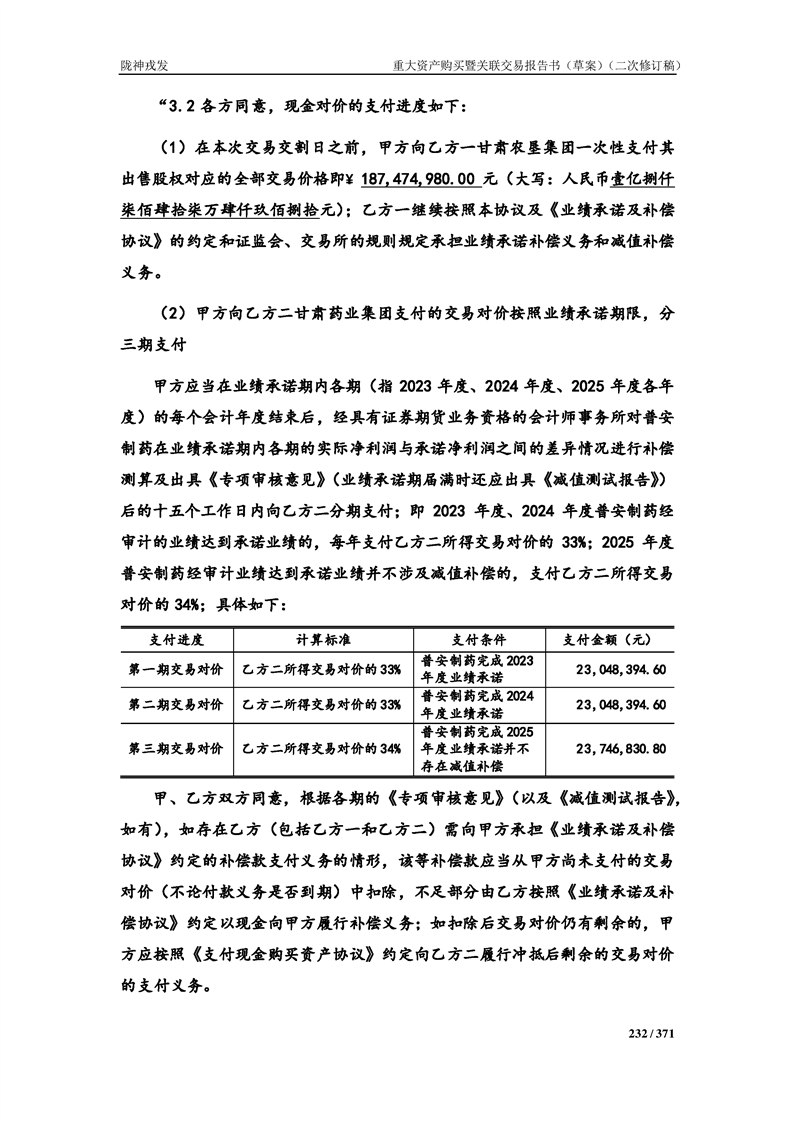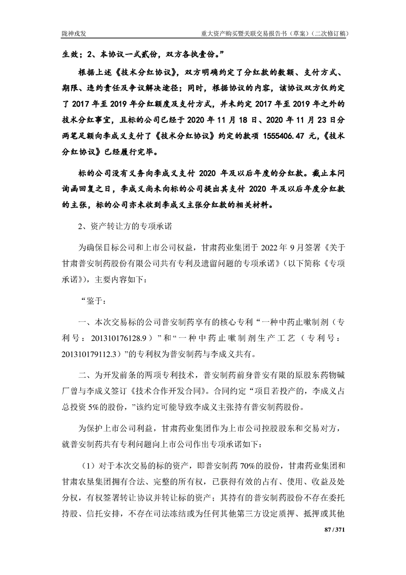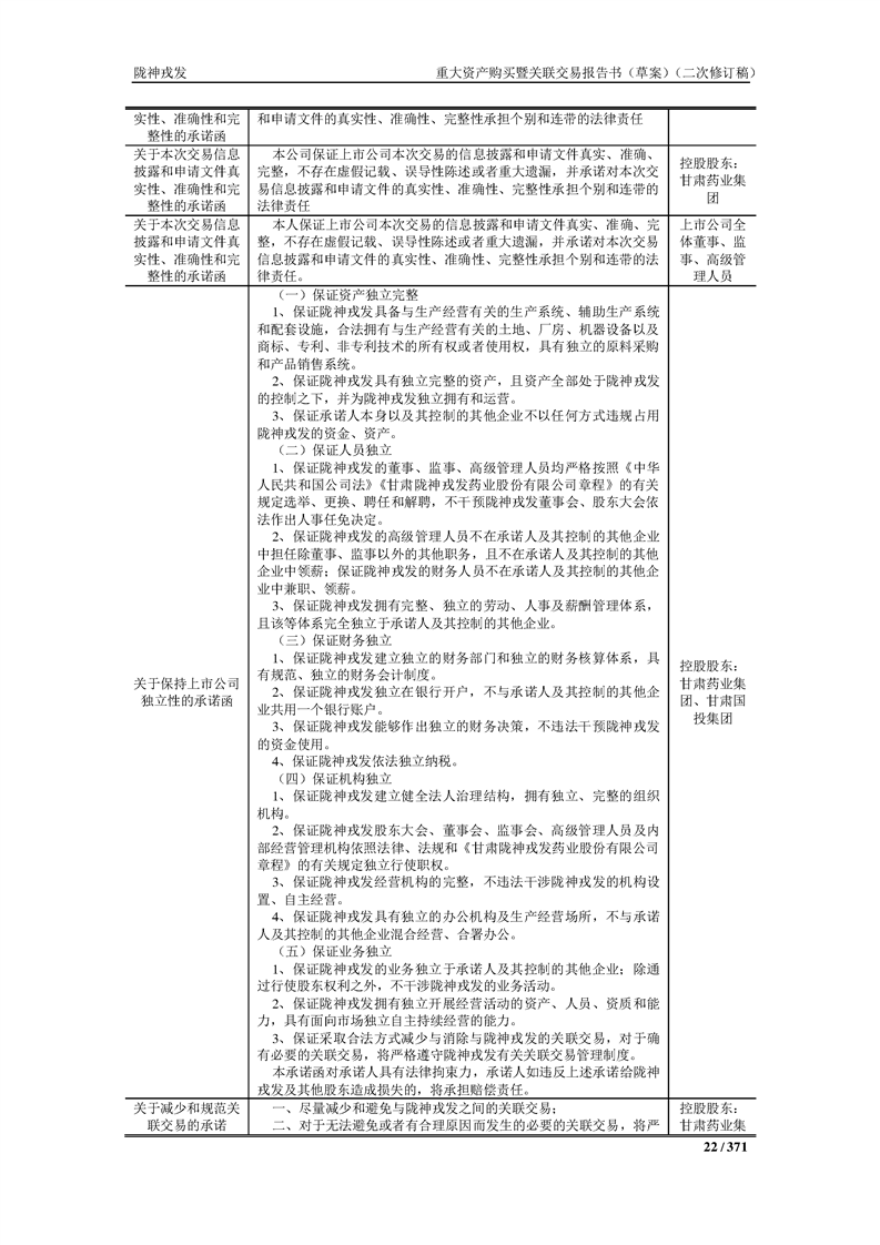 甘肅隴神戎發(fā)藥業(yè)股份有限公司重大資產(chǎn)購買暨關(guān)聯(lián)交易報告書(草案)摘要(二次修訂稿)