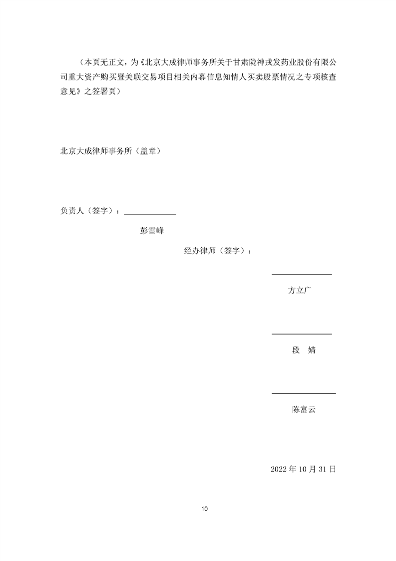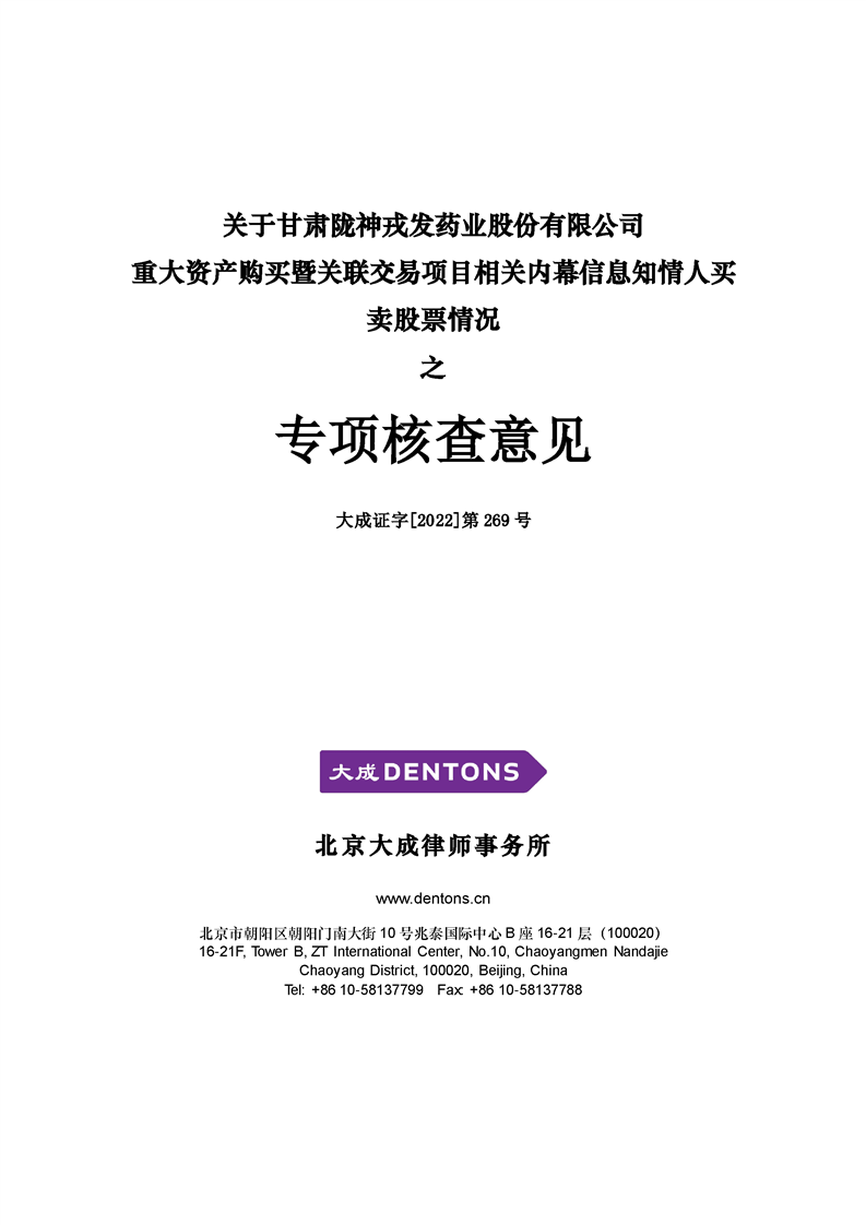 北京大成律師事務(wù)所關(guān)于本次重大資產(chǎn)重組內(nèi)幕信息知情人買賣股票專項(xiàng)核查意見(jiàn)