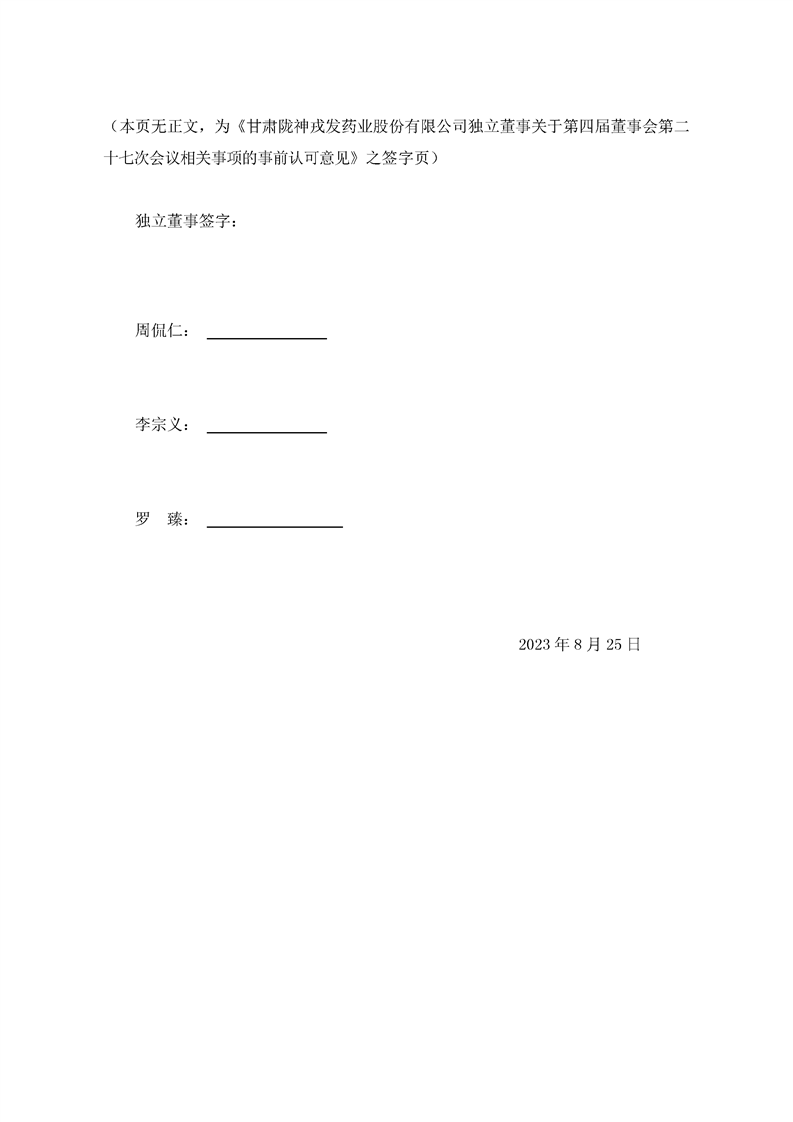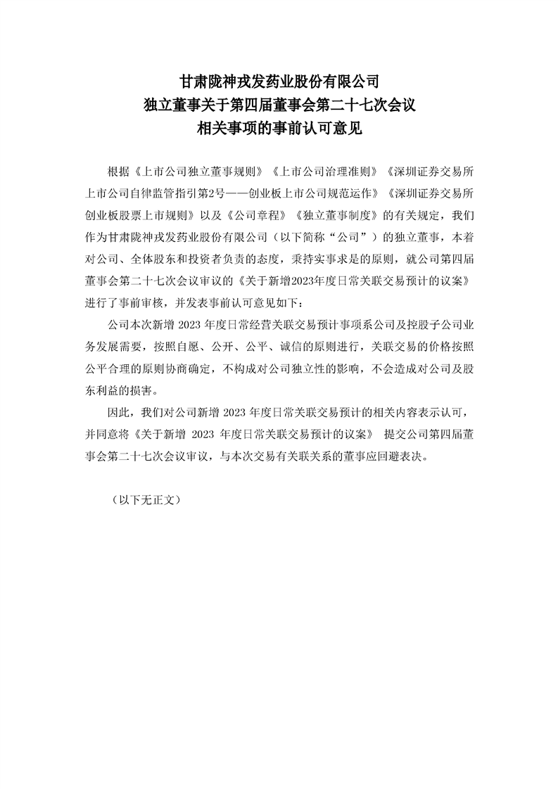 獨立董事關于第四屆董事會第二十七次會議相關事項的事前認可意見