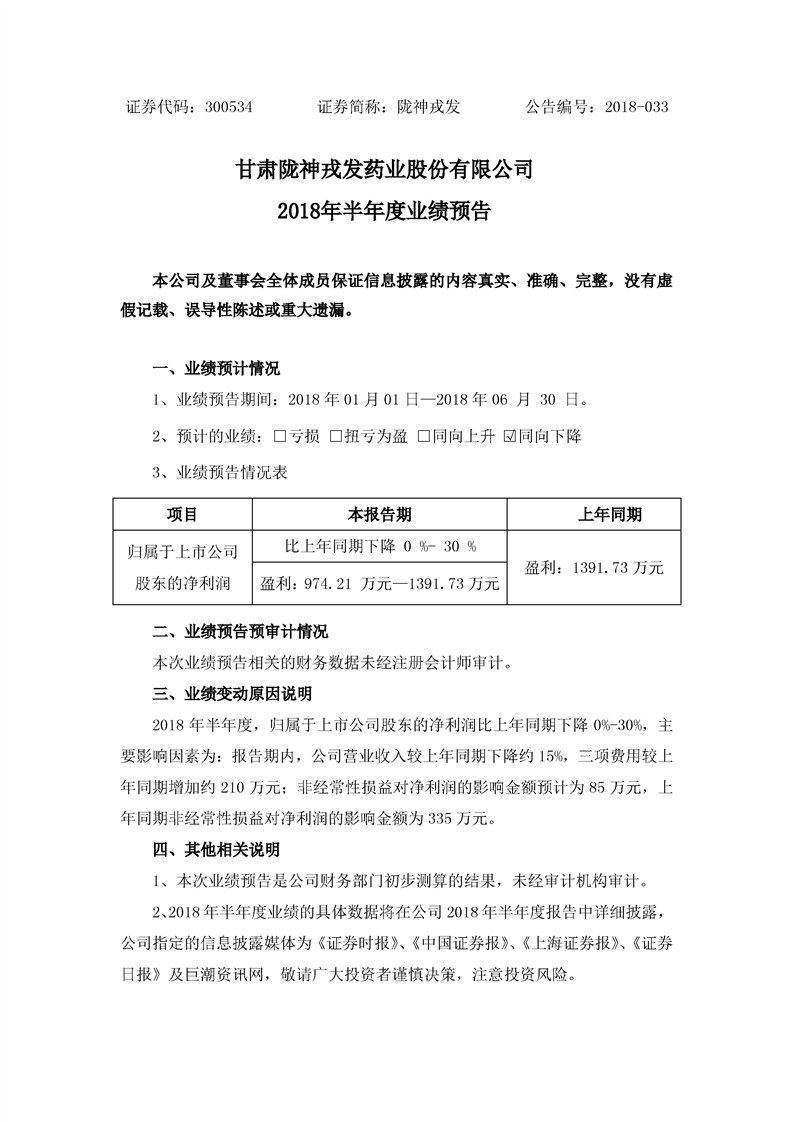 2018年半年度業(yè)績(jī)預(yù)告