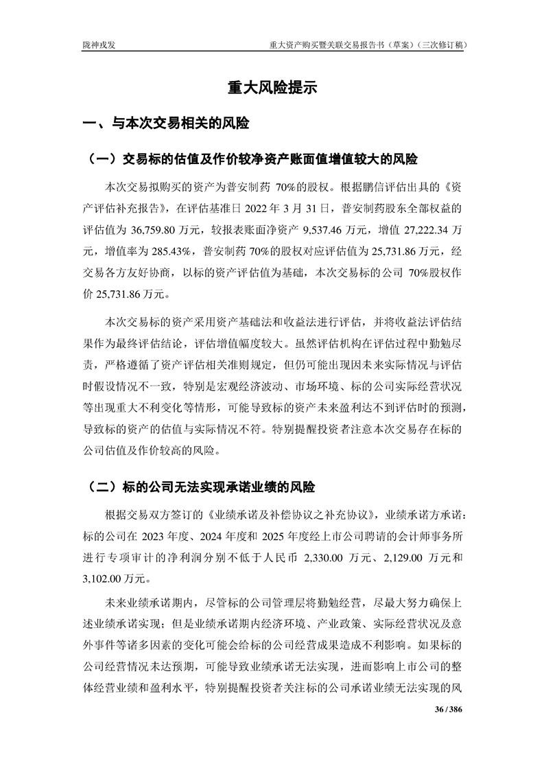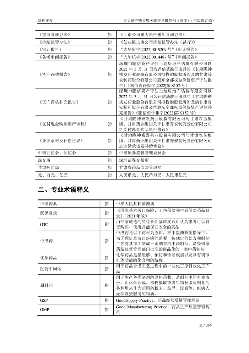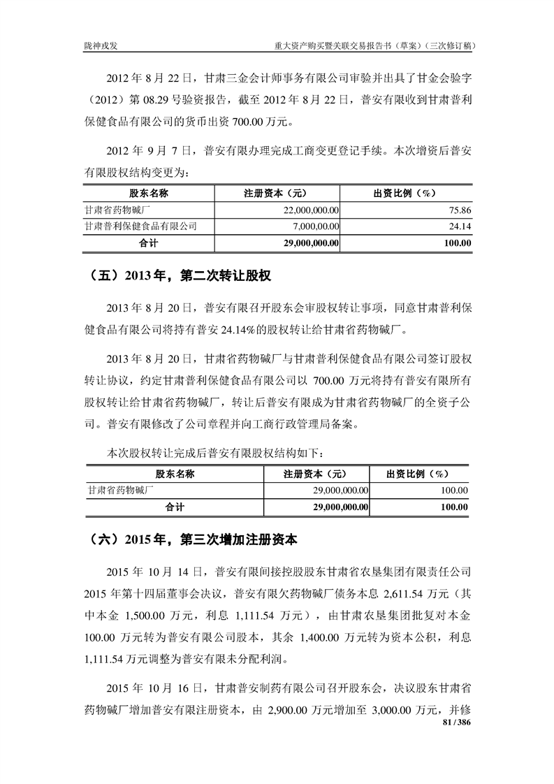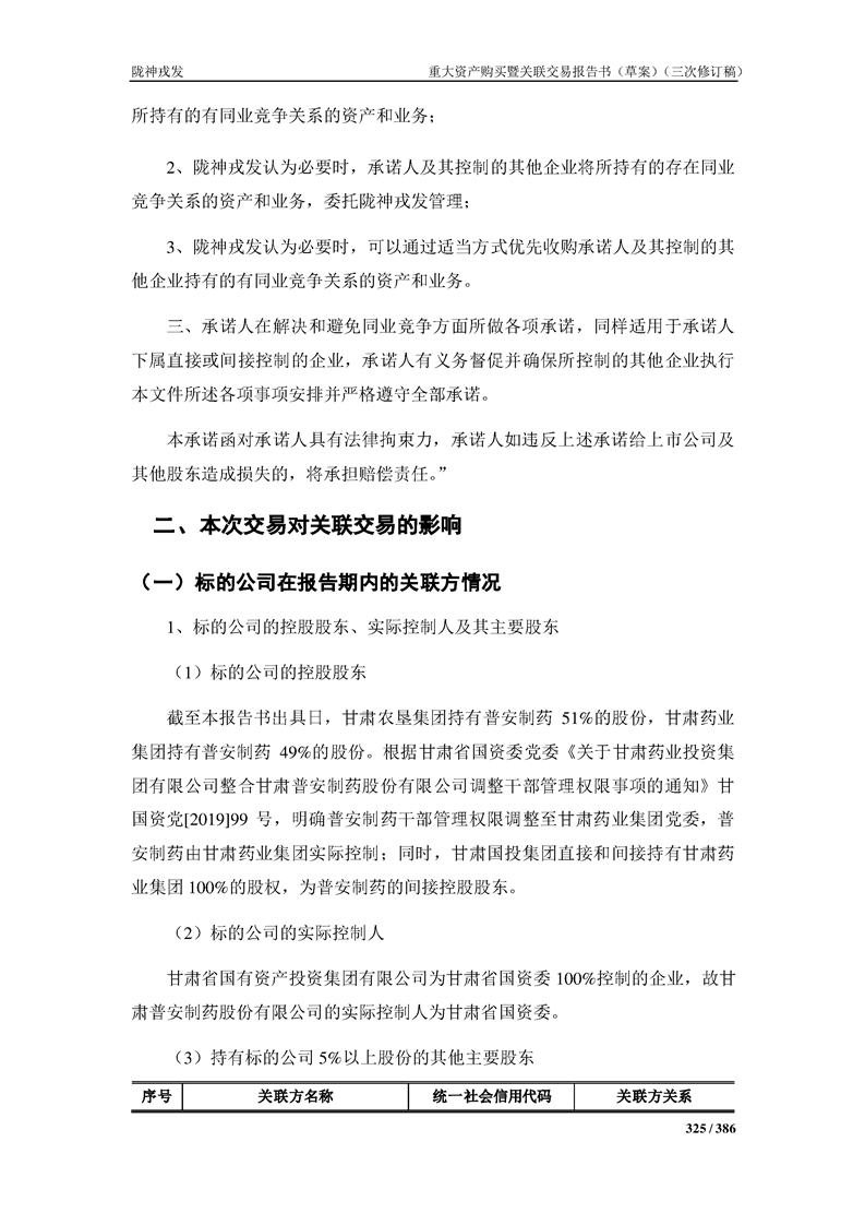 甘肅隴神戎發(fā)藥業(yè)股份有限公司重大資產(chǎn)購買暨關(guān)聯(lián)交易報告書(草案)(三次修訂稿)
