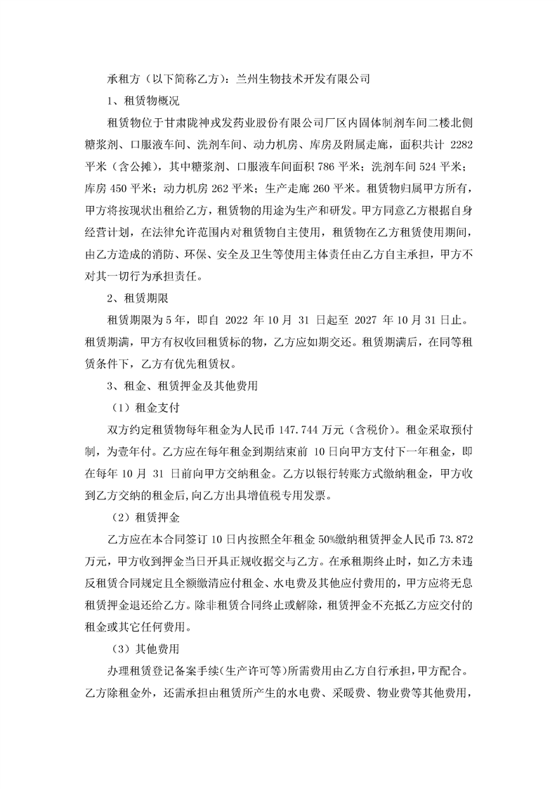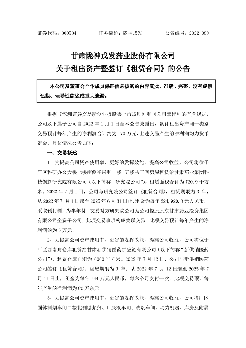 隴神戎發(fā):關(guān)于租出資產(chǎn)暨簽訂《租賃合同》的公告