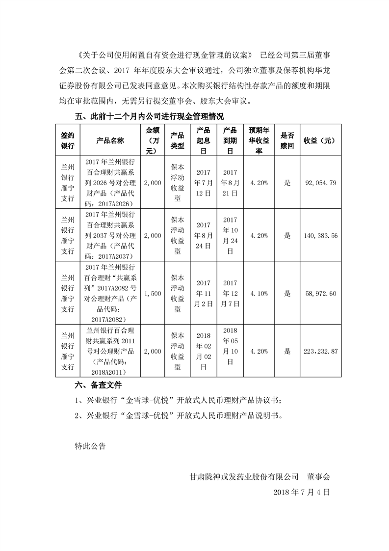 關(guān)于使用閑置自有資金進行現(xiàn)金管理的進展公告