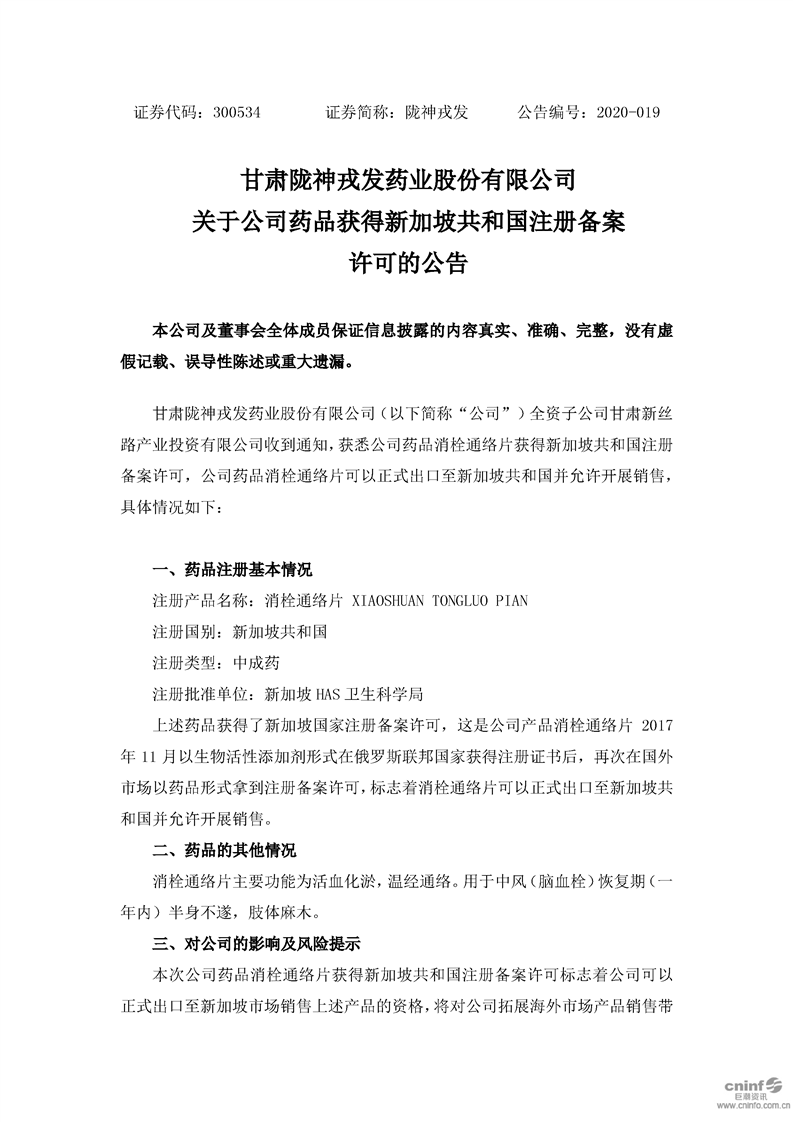 關(guān)于公司藥品獲得新加坡共和國注冊備案許可的公告