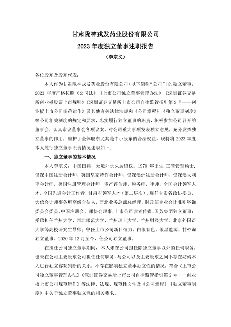 2023年度獨(dú)立董事述職報(bào)告(李宗義)