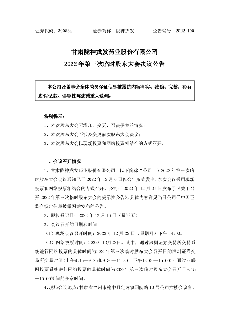 2022年第三次臨時股東大會決議公告