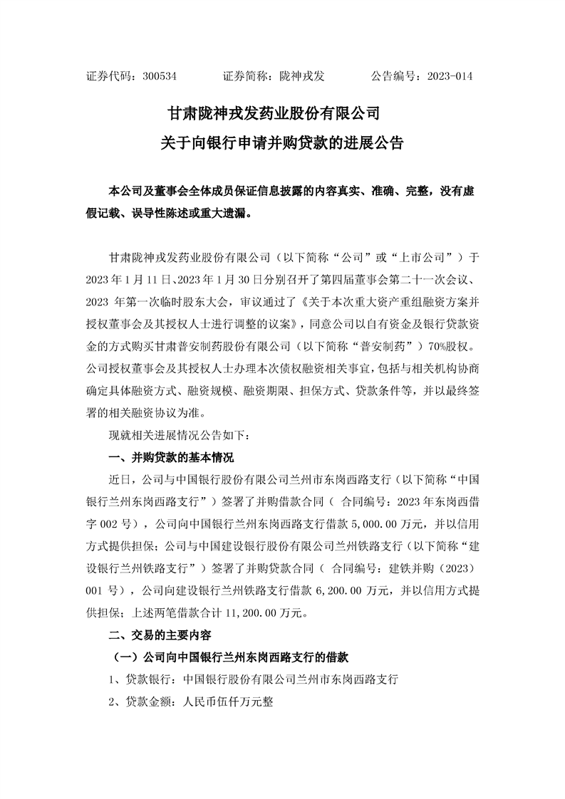 關于向銀行申請并購貸款的進展公告