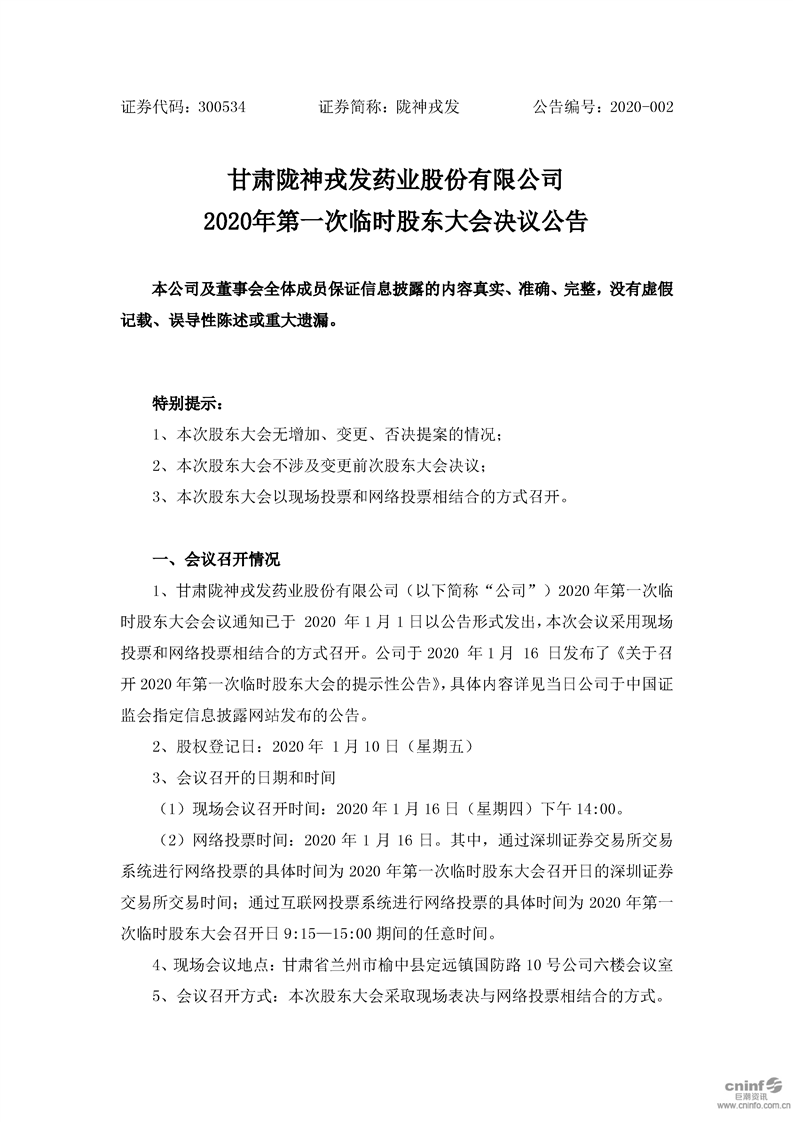 2020年第一次臨時(shí)股東大會(huì)決議公告