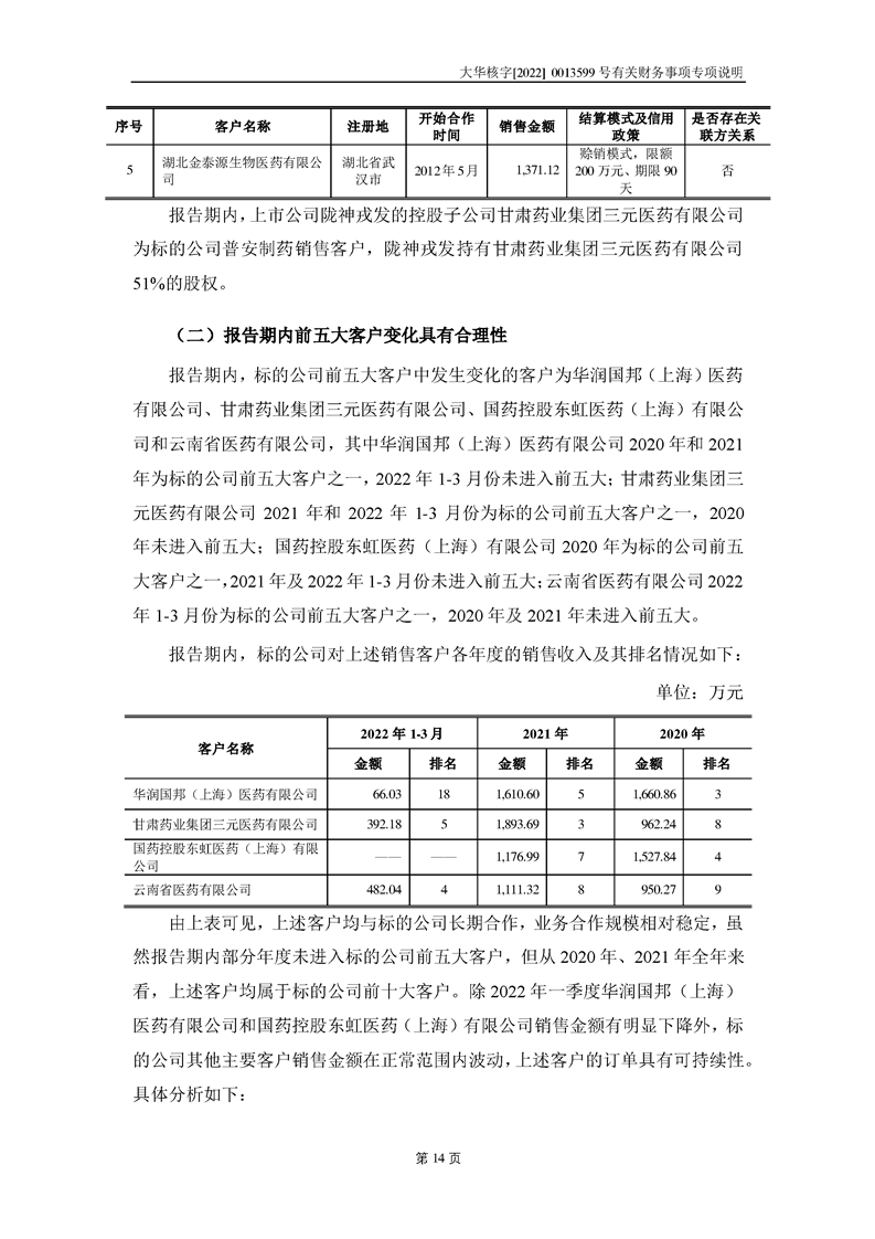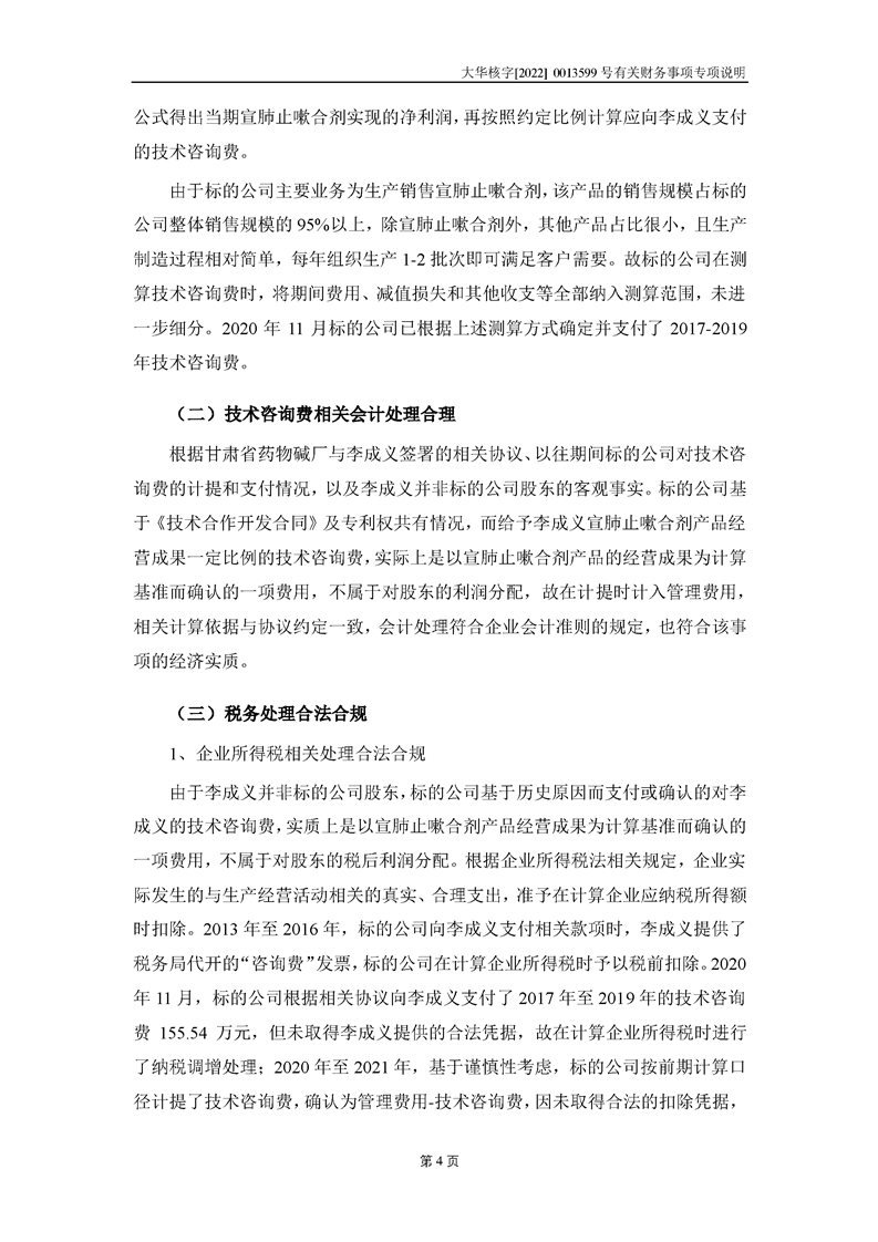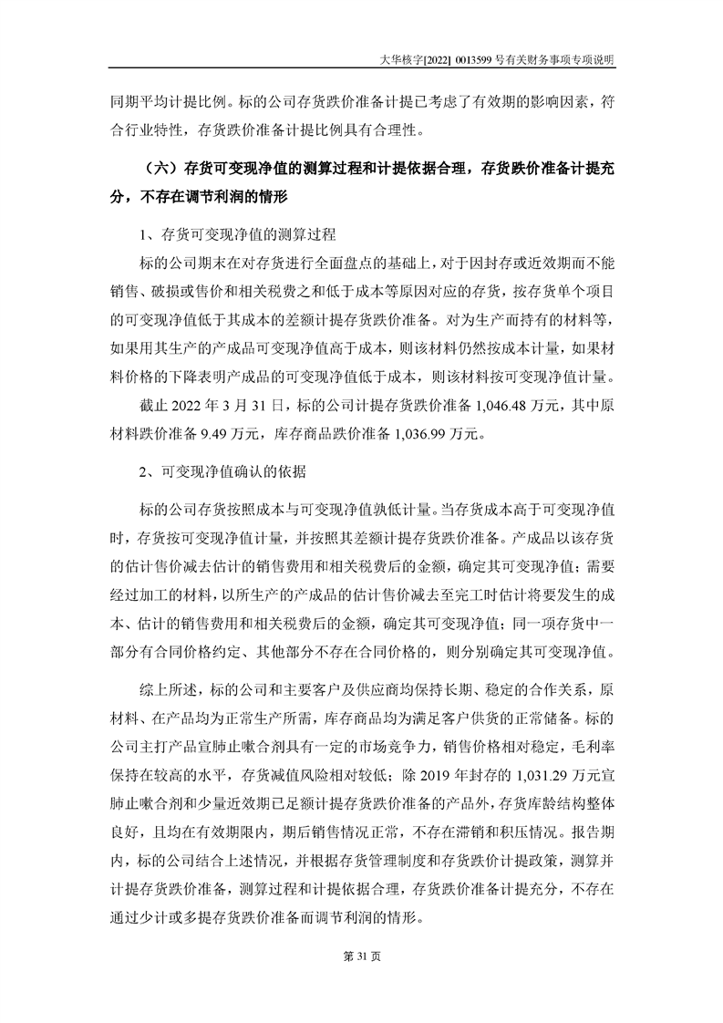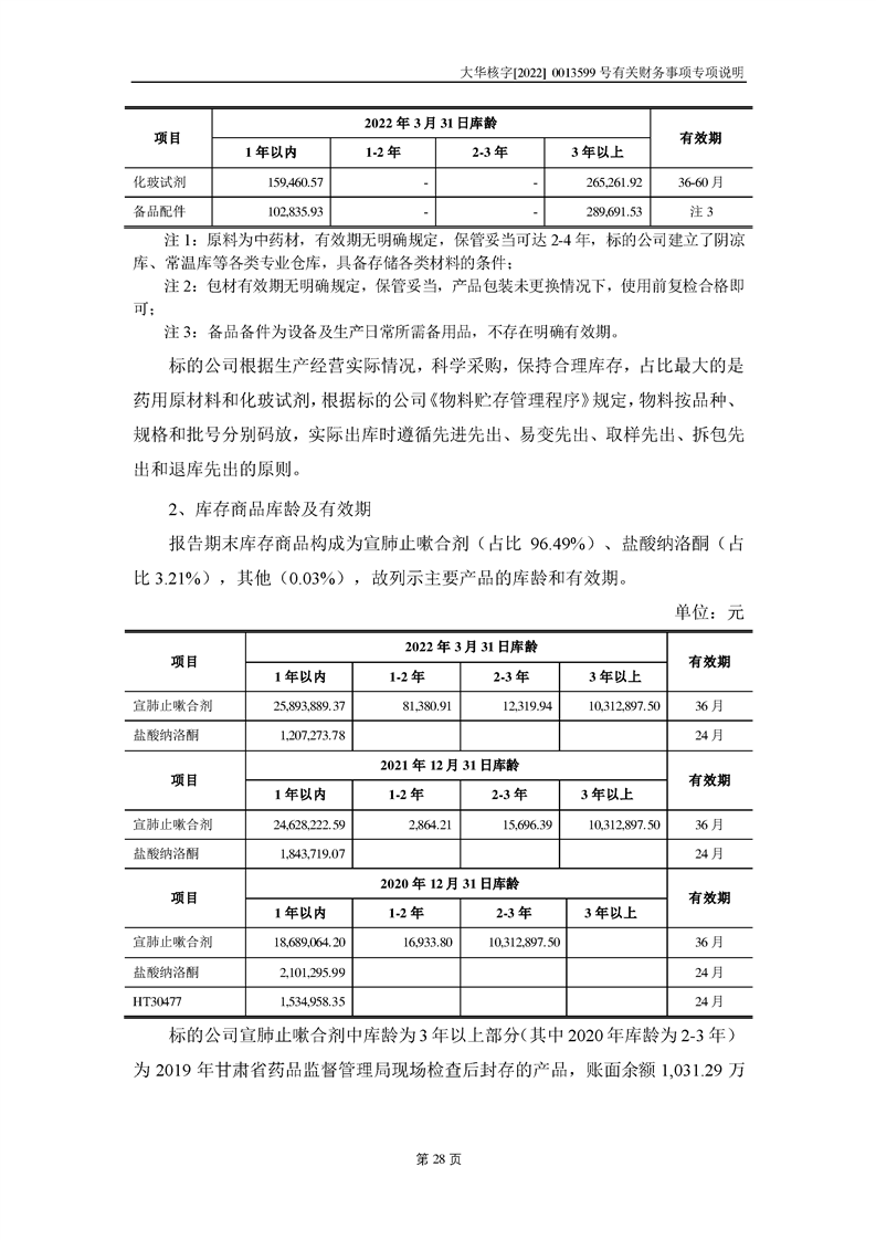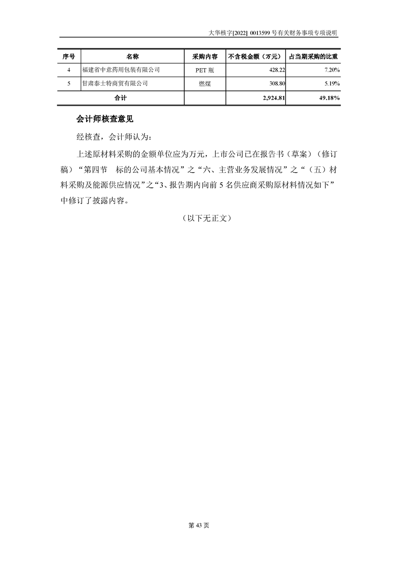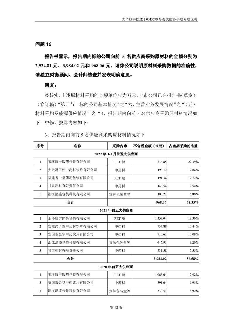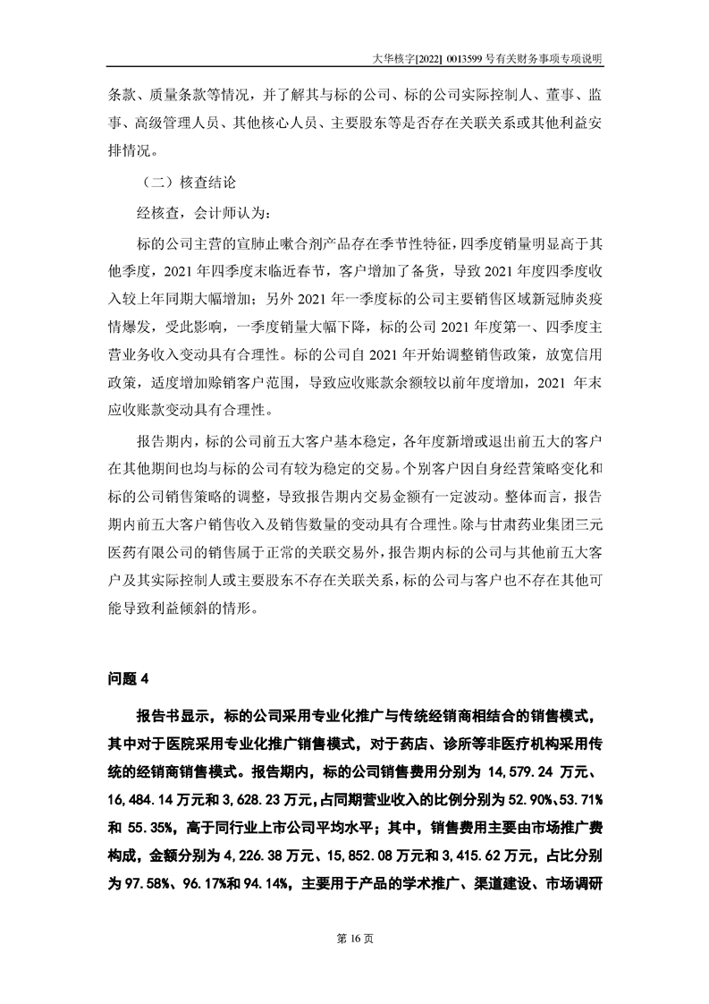 關(guān)于深圳證券交易所對甘肅隴神戎發(fā)藥業(yè)股份有限公司的重組問詢函中有關(guān)財務(wù)事項的專項說明大華核字[2022]0013599號