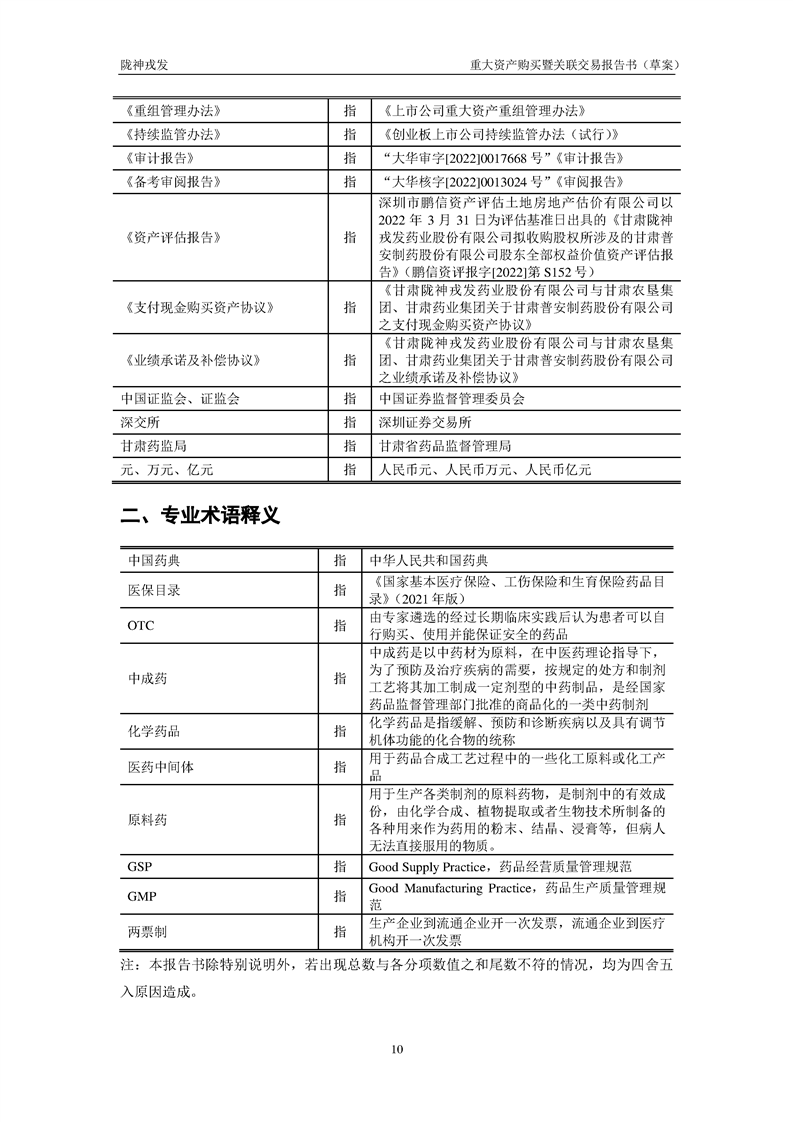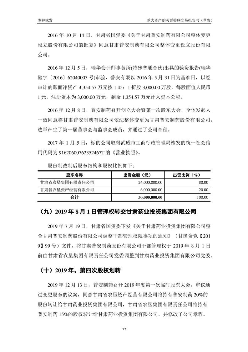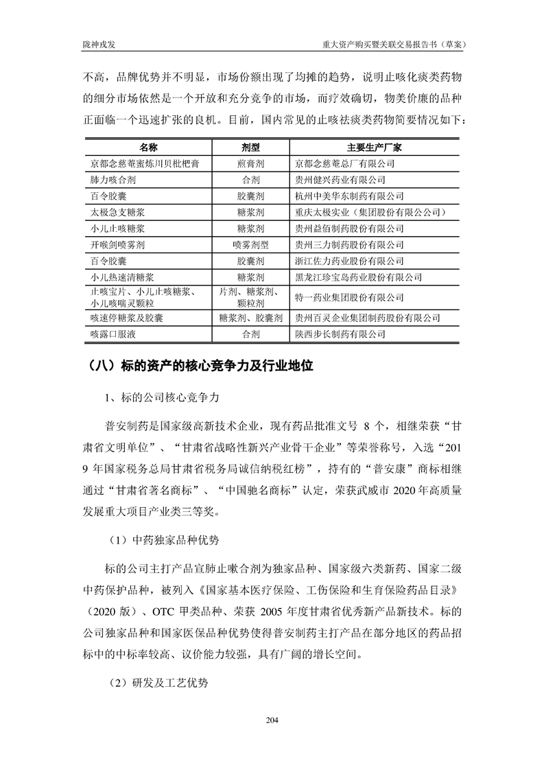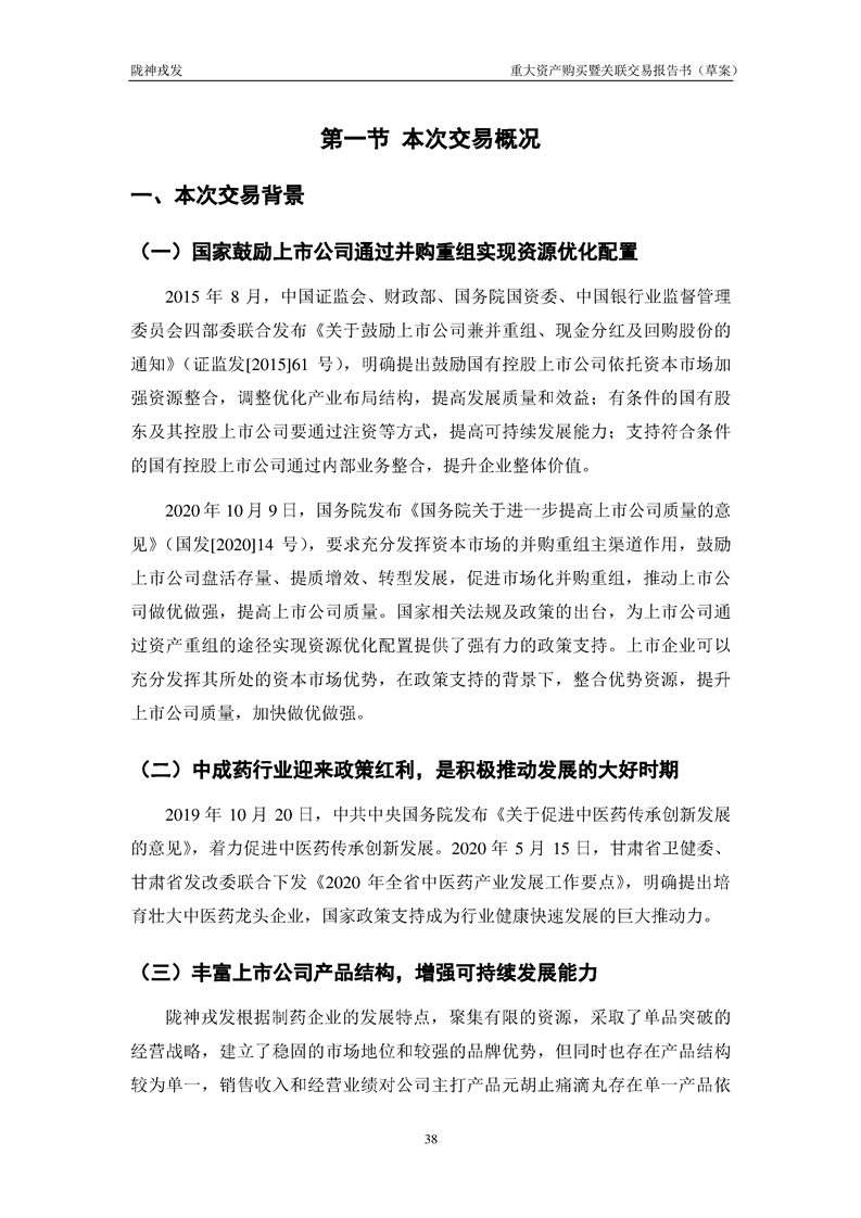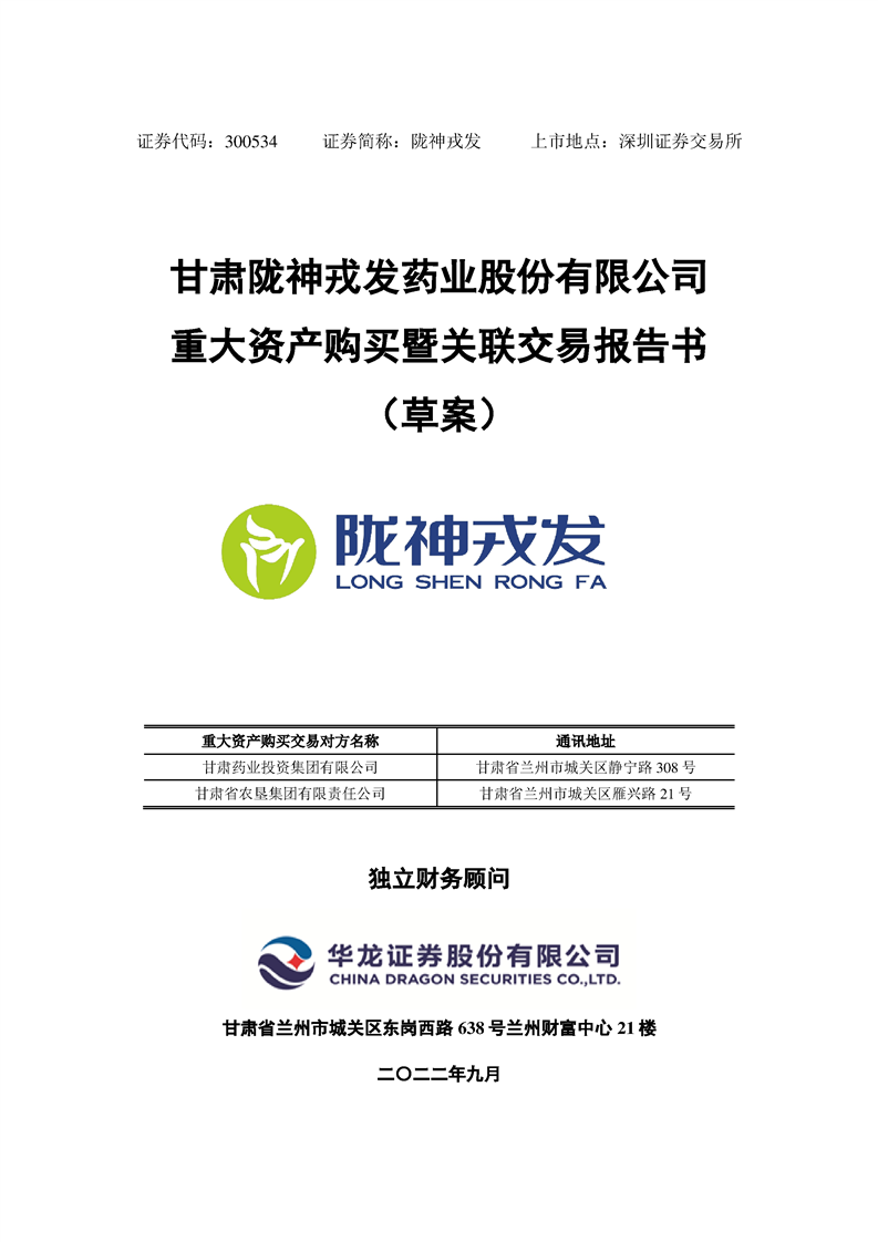 甘肅隴神戎發(fā)藥業(yè)股份有限公司重大資產(chǎn)購(gòu)買暨關(guān)聯(lián)交易報(bào)告書(草案)