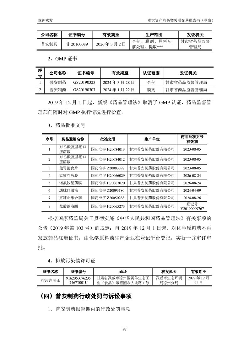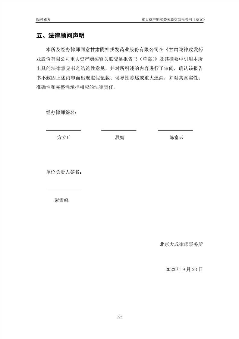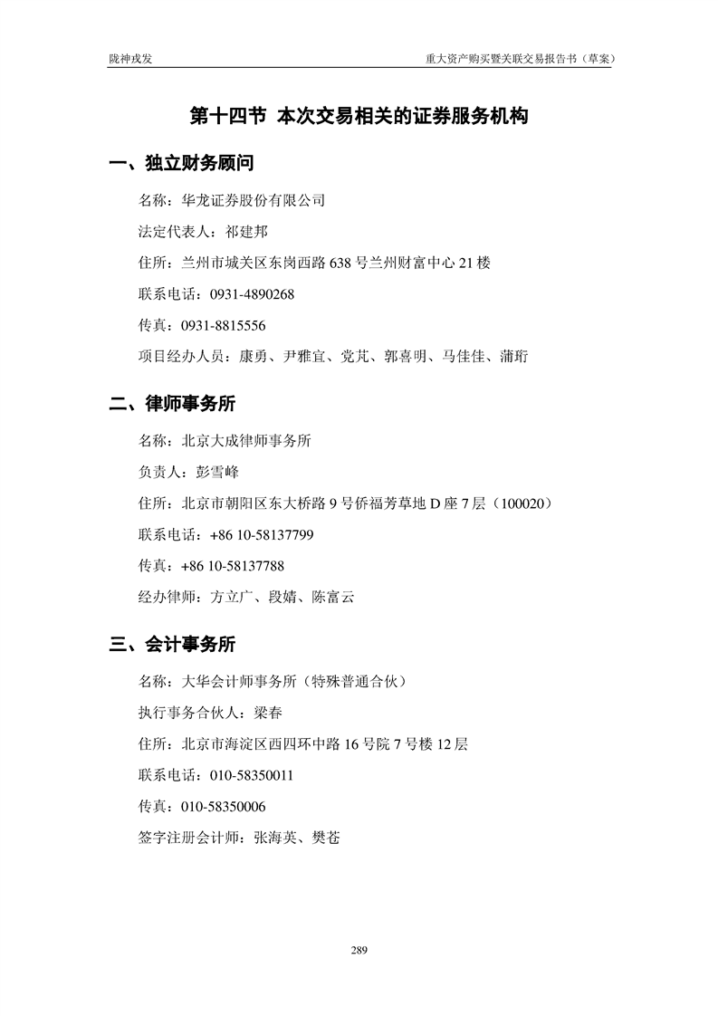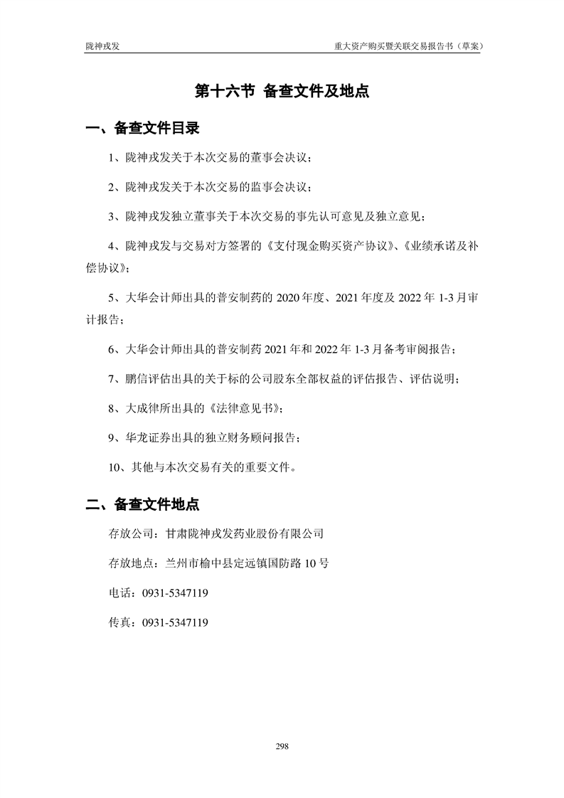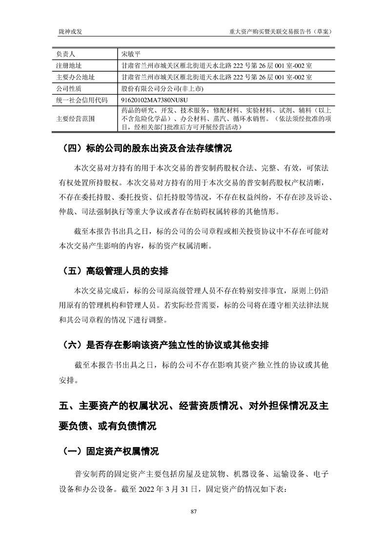 甘肅隴神戎發(fā)藥業(yè)股份有限公司重大資產(chǎn)購(gòu)買暨關(guān)聯(lián)交易報(bào)告書(草案)