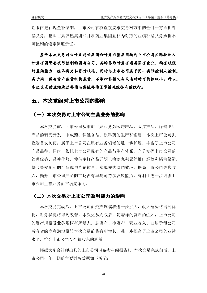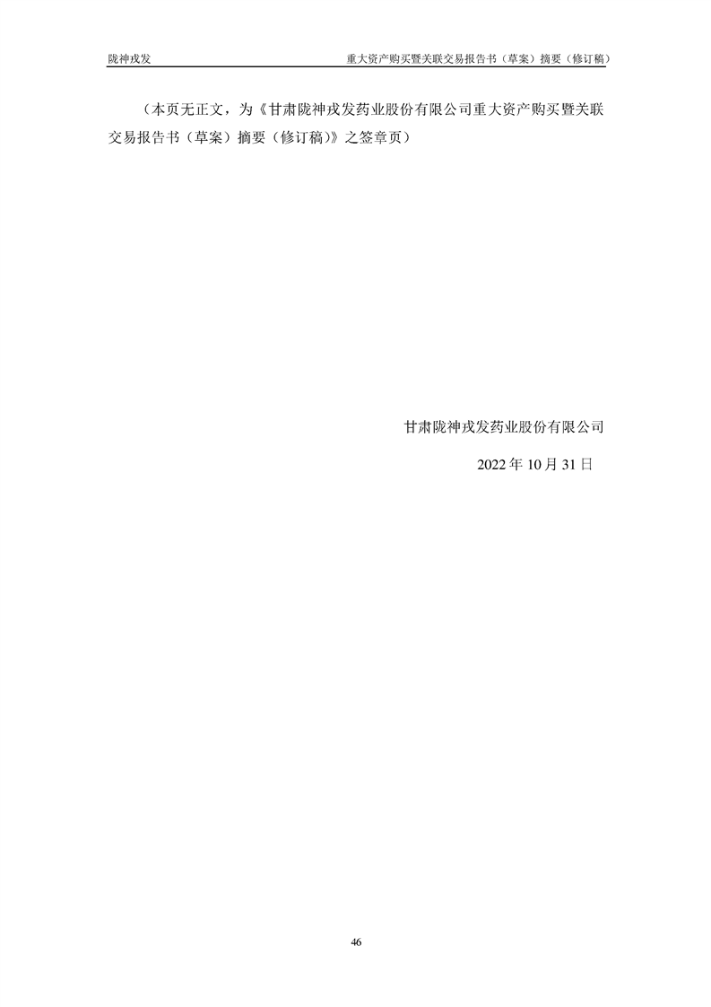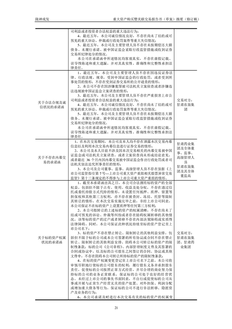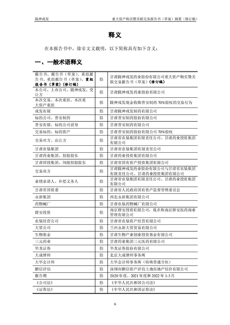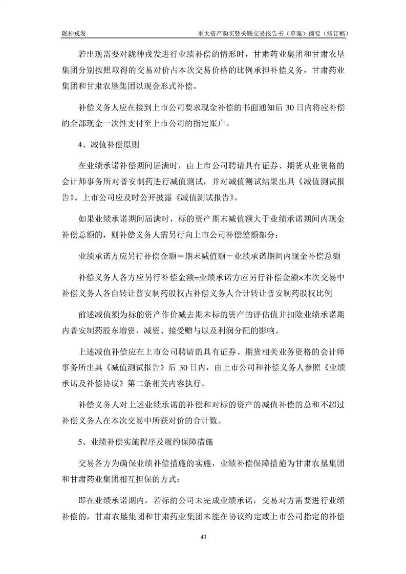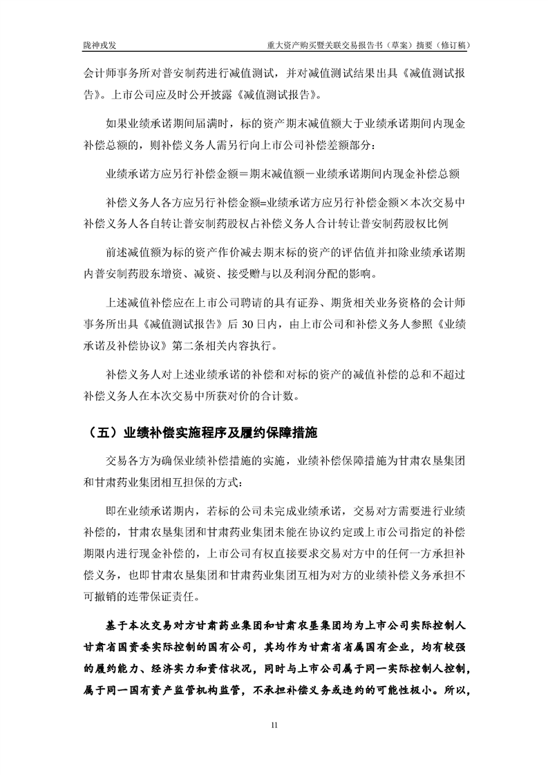 甘肅隴神戎發(fā)藥業(yè)股份有限公司重大資產(chǎn)購買暨關(guān)聯(lián)交易報告書(草案)摘要(修訂稿)