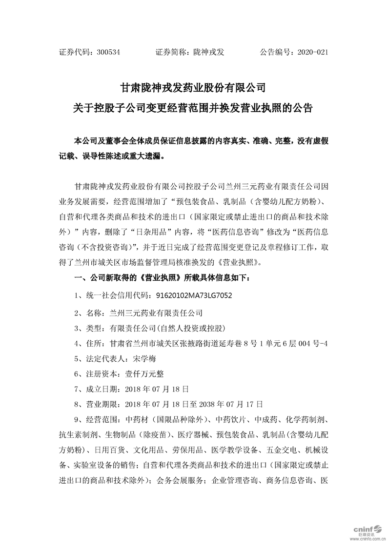 關(guān)于控股子公司變更經(jīng)營范圍并換發(fā)營業(yè)執(zhí)照的公告