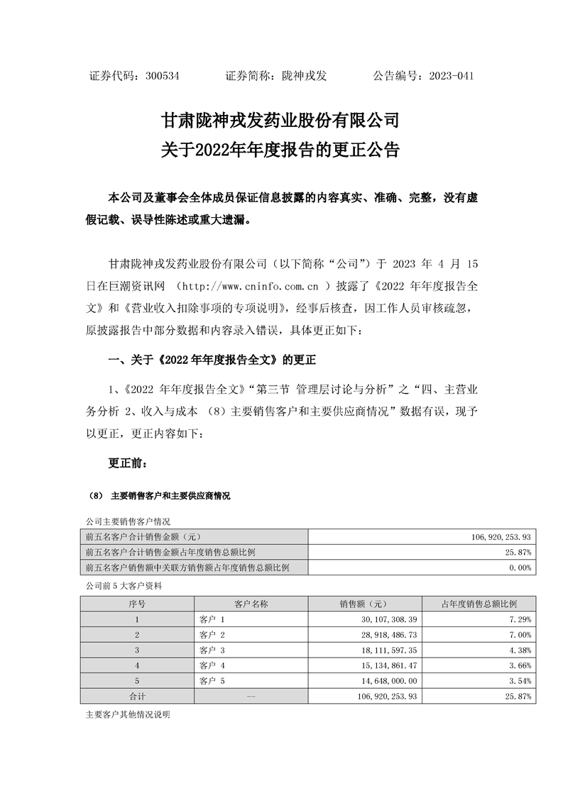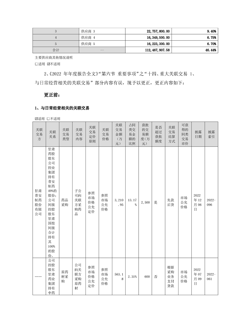 關(guān)于2022年年度報(bào)告的更正公告
