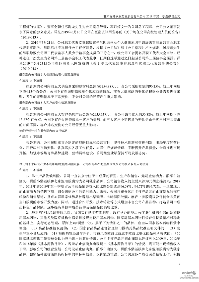 2019年第一季度報(bào)告全文