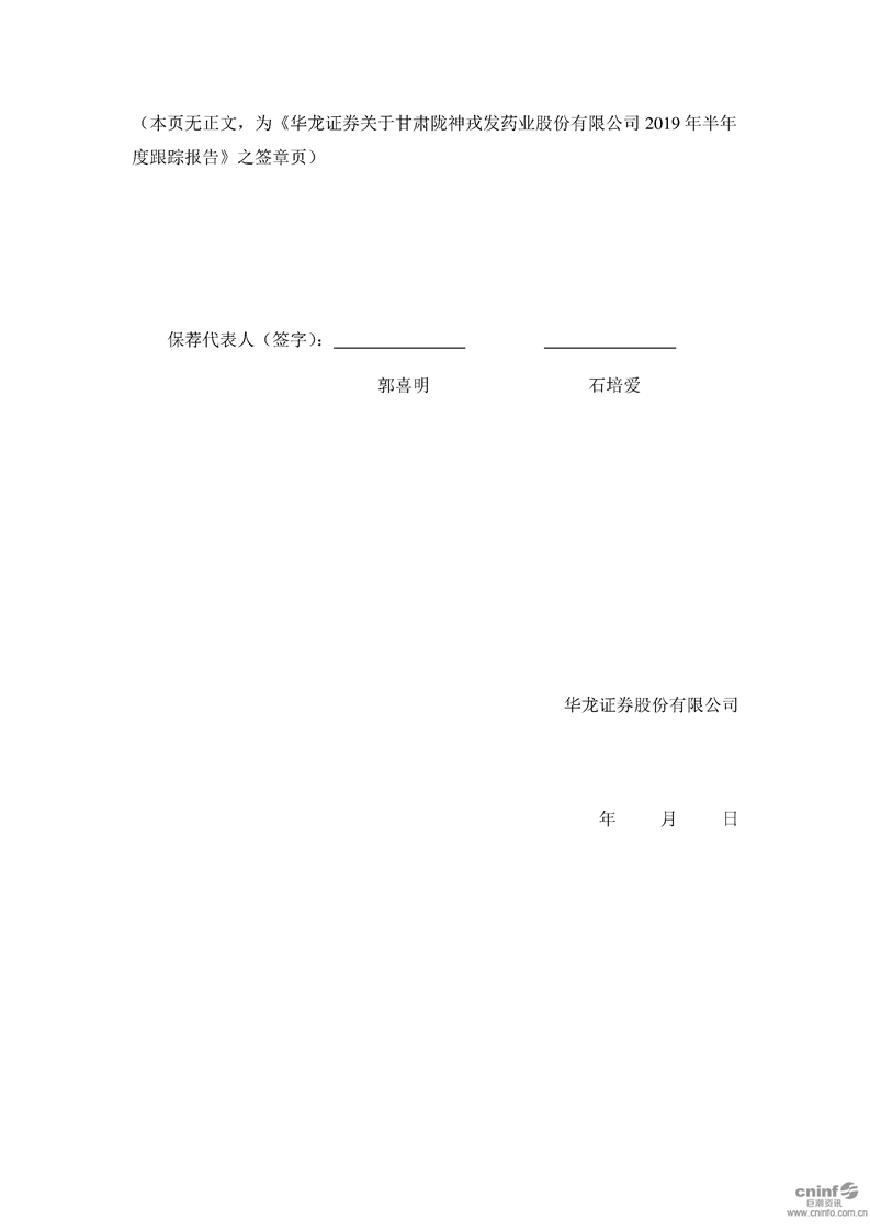 華龍證券股份有限公司關(guān)于公司2019年半年度跟蹤報(bào)告