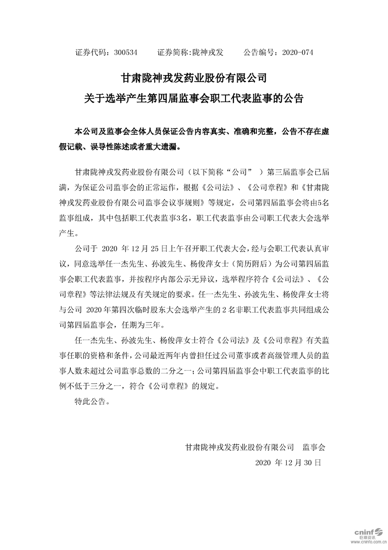 關(guān)于選舉產(chǎn)生第四屆監(jiān)事會(huì)職工代表監(jiān)事的公告