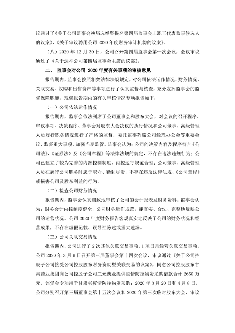 2020年度監(jiān)事會工作報(bào)告