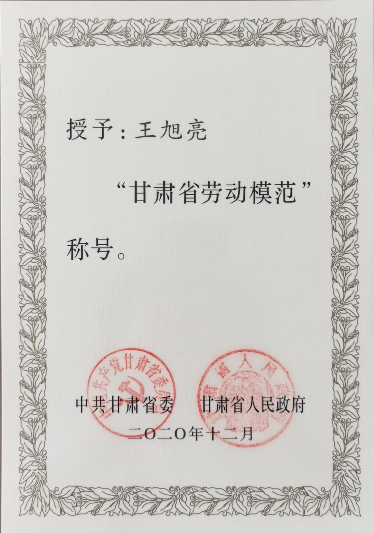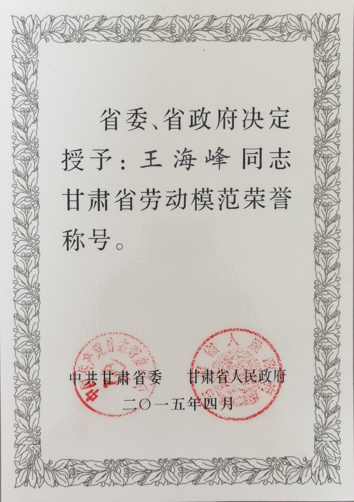 隴神戎發(fā)任一杰、王海峰、王旭亮分別獲“全國五一勞動(dòng)獎(jiǎng)?wù)隆?、“甘肅省勞動(dòng)模范”榮譽(yù)稱號(hào)