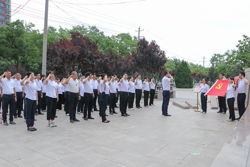 上午8時30分,升國旗參加儀式的全體干部職工儀容嚴整、整齊列隊。隨著《義勇軍進行曲》振奮激昂的旋律響起,護旗手英姿挺拔、精神抖擻、將鮮艷的五星紅旗冉冉升起、迎風飄揚。參加儀式全體人員面向國旗行注目禮,共慶黨的生日,獻禮偉大祖國。