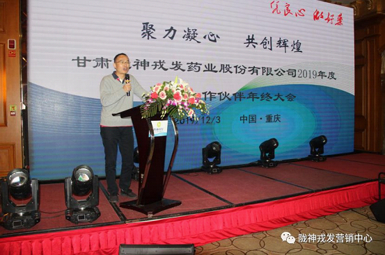 甘肅隴神戎發(fā)藥業(yè)股份有限公司副總經(jīng)理,營(yíng)銷總監(jiān)蘇海龍先生做了2019年?duì)I銷工作總結(jié)及2020年規(guī)劃。蘇總首先分析了近年國(guó)家醫(yī)藥行業(yè)政策變動(dòng)對(duì)全行業(yè)的影響,總結(jié)公司產(chǎn)品在2019年的銷售情況,并表示在2020年將繼續(xù)執(zhí)行新開(kāi)發(fā)醫(yī)院獎(jiǎng)勵(lì)、學(xué)術(shù)活動(dòng)支持等銷售政策,持續(xù)打造優(yōu)秀的銷售服務(wù)能力,建設(shè)靈活多變的銷售渠道,堅(jiān)持以銷售帶動(dòng)企業(yè)的發(fā)展理念,勇于創(chuàng)新,繼續(xù)拼搏。希望在未來(lái)的道路上能夠與各位合作伙伴互相理解,互相信任,互相支持,共同發(fā)展。