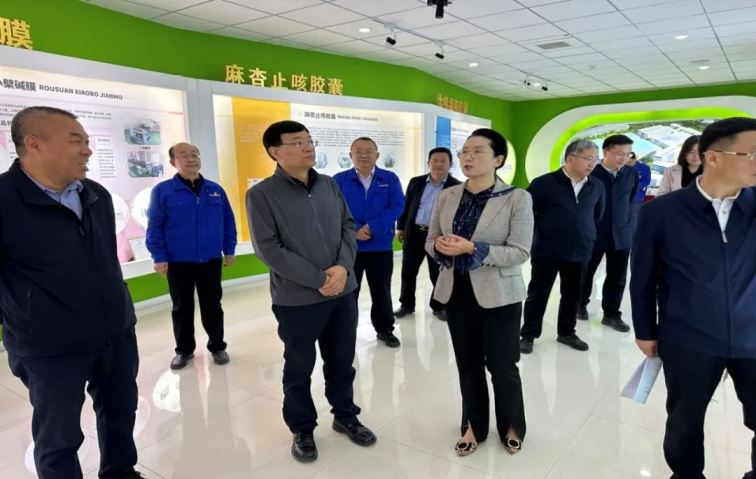 隨后參觀企業(yè)產(chǎn)品展廳,楊俊萍介紹了公司主打產(chǎn)品元胡止痛滴丸及斯娜格藥膜、酸棗仁油滴丸、七味溫陽(yáng)膠囊等4個(gè)全國(guó)獨(dú)家品種和其他普藥產(chǎn)品,以及公司擴(kuò)產(chǎn)保供期間生產(chǎn)的宣肺止嗽合劑。陶正茂還詢問(wèn)了解了廠區(qū)一期項(xiàng)目建設(shè)及二期項(xiàng)目規(guī)劃與推進(jìn)情況,并在生產(chǎn)線監(jiān)控室觀看了全自動(dòng)化的智能生產(chǎn)線和藥品生產(chǎn)過(guò)程。