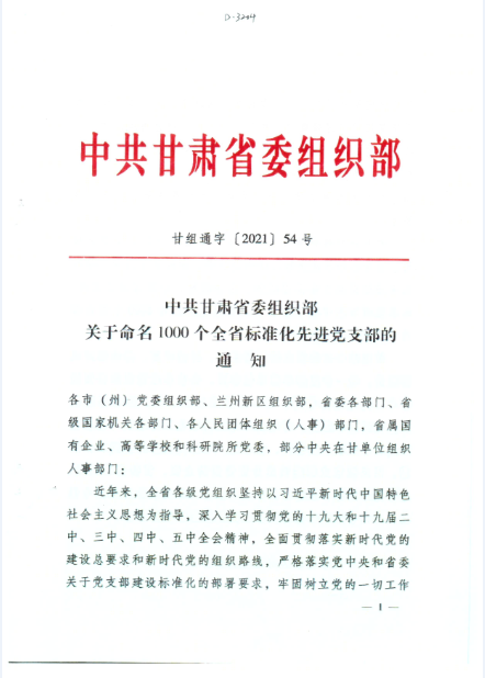 近日,甘肅省委組織部印發(fā)《關(guān)于命名1000個(gè)全省標(biāo)準(zhǔn)化先進(jìn)黨支部的通知》,對(duì)在決戰(zhàn)決勝脫貧攻堅(jiān)、統(tǒng)籌推進(jìn)疫情防控和經(jīng)濟(jì)社會(huì)發(fā)展、推動(dòng)脫貧攻堅(jiān)與鄉(xiāng)村振興有效銜接等重大任務(wù)、中心工作中涌現(xiàn)出的1000個(gè)標(biāo)準(zhǔn)化先進(jìn)黨支部進(jìn)行了命名。甘肅隴神戎發(fā)藥業(yè)股份有限公司所屬生產(chǎn)黨支部光榮上榜。
