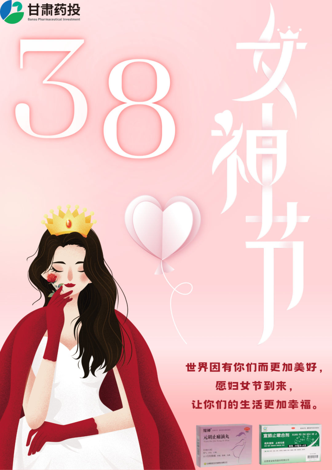甘肅藥業(yè)投資集團(tuán)有限公司在這個(gè)最美的節(jié)日里,溫暖進(jìn)社區(qū),攜宣元好藥,一同守護(hù)女性的健康,你們是世界的半邊天,世界因有你們而變得更加美好,婦女節(jié)到來(lái)之際,祝您事業(yè)蒸蒸日上,生活幸福美滿。