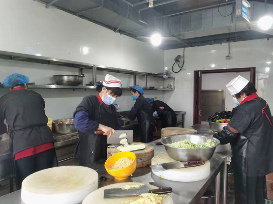作為公司防疫戰(zhàn)疫的根據(jù)地,職工食堂責任重大。疫情發(fā)生之際,為了嚴格管控疫情發(fā)生、蔓延,后勤服務(wù)部部長潘軍帶病對職工食堂衛(wèi)生安全,消毒措施執(zhí)行,實行分餐制飲食等方面積極應(yīng)對,想方設(shè)法保障三餐正常,千方百計提高伙食質(zhì)量,員工們對于食堂工作給予一致好評。