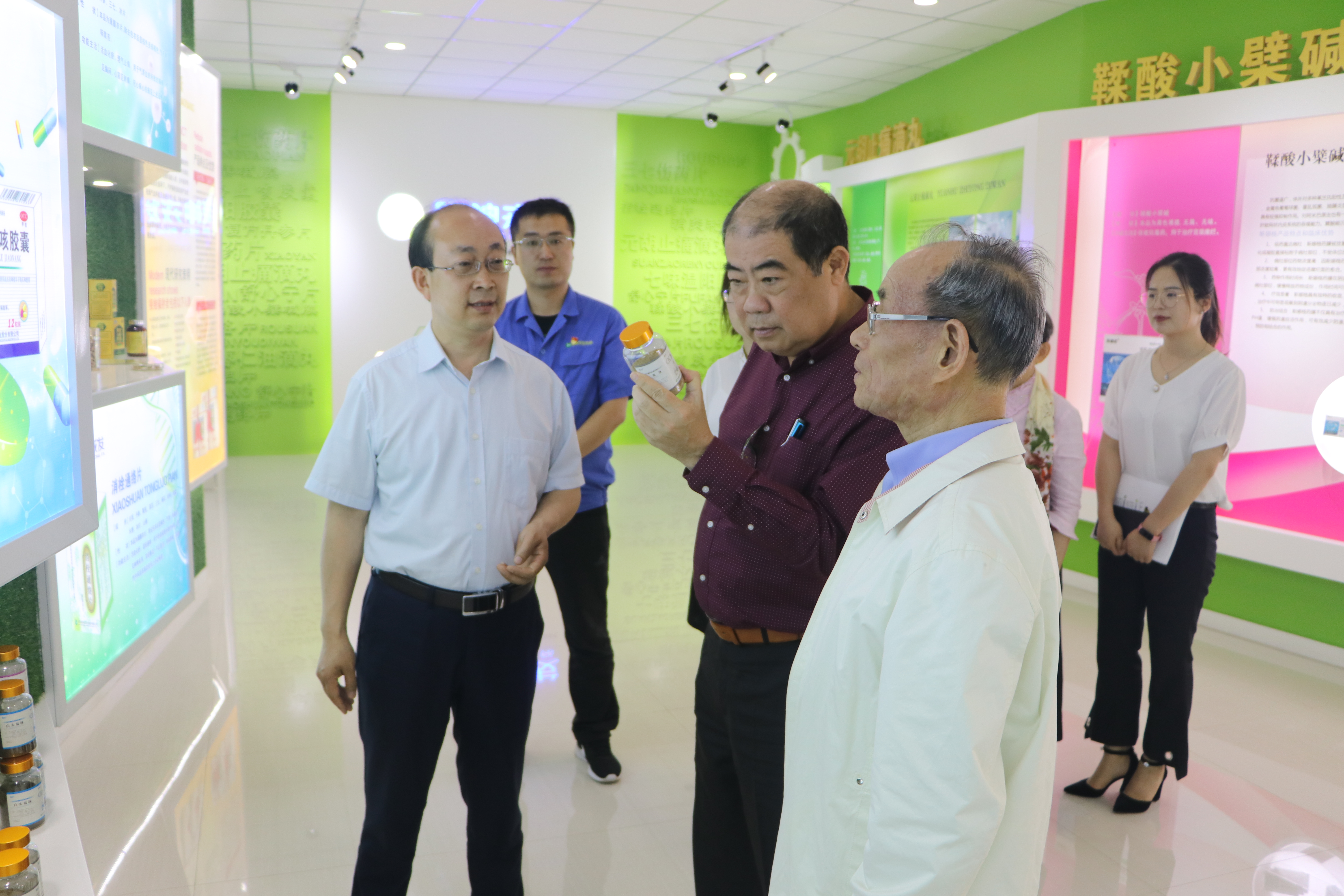 在產(chǎn)品展廳,元勤輝介紹了公司產(chǎn)品情況,重點講解了公司主打品種、獨家產(chǎn)品元胡止痛滴丸的藥效基理、治療范圍、劑型優(yōu)勢及公司深入開展中藥大品種二次深度開發(fā)取得的成果和進展情況。元胡止痛滴丸作為一款現(xiàn)代劑型的純中藥產(chǎn)品,以理氣、活血、止痛為治療基理,具有效力持久、綠色安全、吸收迅速、療效確切、不成癮、標本兼治的獨特療效,可用于氣滯血瘀引起的胃痛、脅痛、頭痛及行經(jīng)腹痛等,連續(xù)多年入選國家基藥目錄,是慢性疼痛、中輕度疼痛疾病治療的理想用藥。