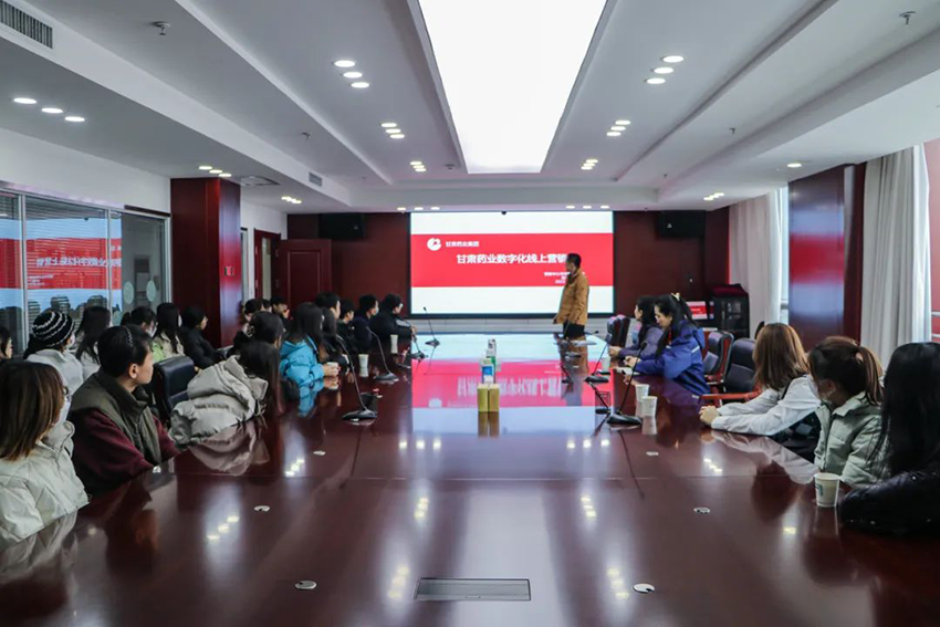 12月15日上午,由甘肅政法大學(xué)姚建銀教師帶領(lǐng)營(yíng)銷(xiāo)專(zhuān)業(yè)學(xué)生三十余人到隴神戎發(fā)參觀并交流討論。公司黨委委員、紀(jì)委書(shū)記楊俊萍,黨群工作部部長(zhǎng)任一杰,甘肅藥業(yè)集團(tuán)運(yùn)營(yíng)有限公司電商業(yè)務(wù)經(jīng)理趙晨陪同參觀并座談交流。