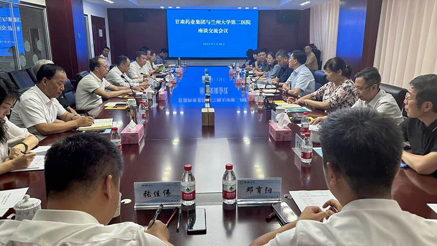 7月28日上午,蘭州大學(xué)第二醫(yī)院院長(zhǎng)周文策一行蒞臨隴神戎發(fā)參觀并進(jìn)行座談交流。甘肅藥業(yè)集團(tuán)公司黨委書記、董事長(zhǎng)周榮,黨委副書記、總經(jīng)理竇生銘,黨委委員、副總經(jīng)理張世俊、康海軍、胡寧,財(cái)務(wù)總監(jiān)王麗華等企業(yè)相關(guān)人員參加調(diào)研并座談。
