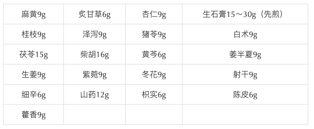 3付一個療程。(注意:如果患者不發(fā)燒則生石膏的用量要小,發(fā)燒或壯熱加大生石膏的用量。)