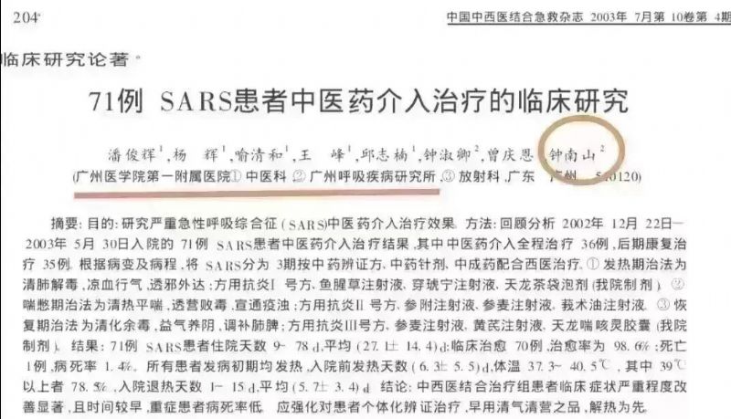 廣州呼吸疾病研究所中醫(yī)介入后的治療情況也有論文,論文第一到第五作者都是中醫(yī)科的,也證明是以中醫(yī)科為主治療的。