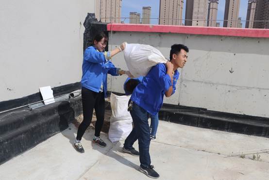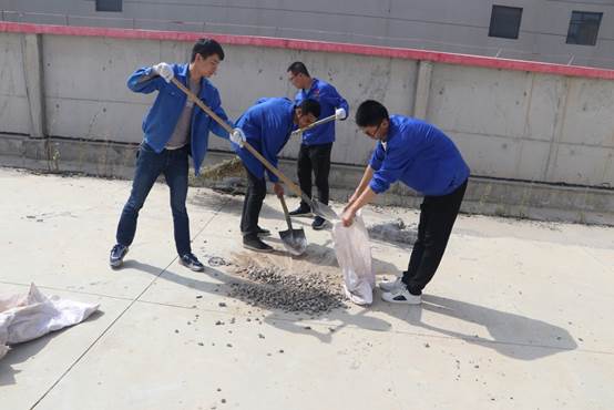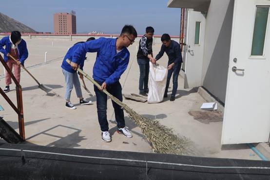 廠區(qū)樓頂?shù)哪嗤痢⑹、塑料等下雨天被雨水沖刷后,容易堵塞樓頂排水口,存在安全隱患。所以此次清理活動(dòng),主要針對(duì)樓頂環(huán)境衛(wèi)生、衛(wèi)生死角進(jìn)行了集中清理;顒(dòng)開始后團(tuán)總支將已準(zhǔn)備好的鐵鍬、簸箕、掃帚等工具分發(fā)到各小組,所有人登上樓頂,發(fā)揮不怕苦、臟、累的精神,積極地清理石子、泥土、雜物等垃圾。利用廢棄的編織袋來裝運(yùn),即節(jié)省了物資,又能二次利用。