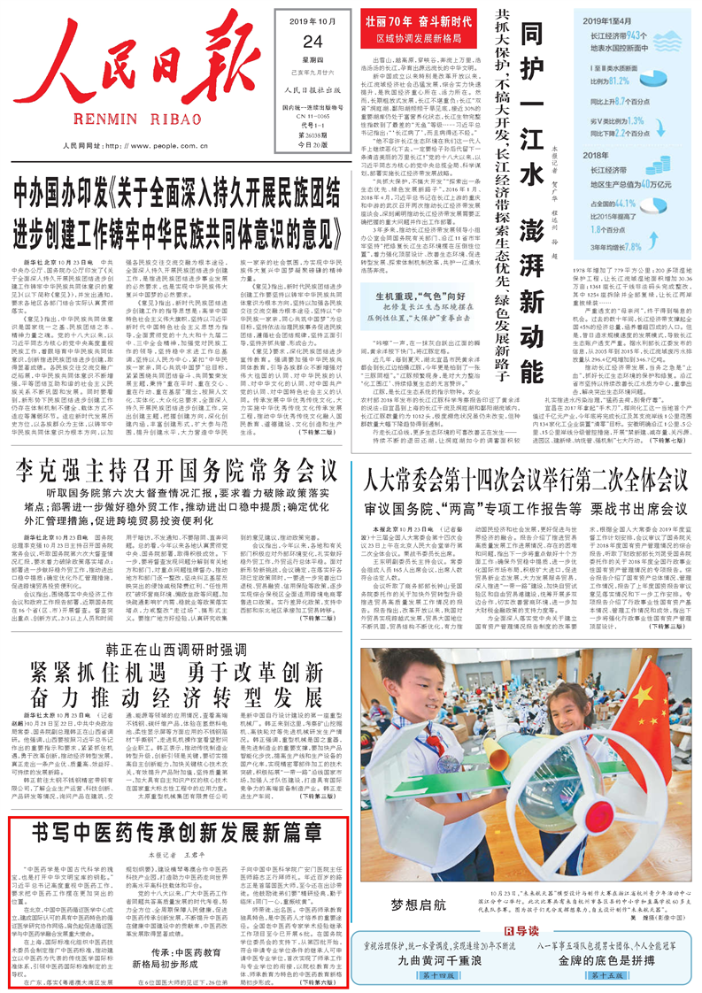 人民日?qǐng)?bào)頭版:書寫中醫(yī)藥傳承創(chuàng)新發(fā)展新篇章