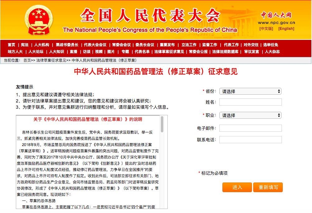 11月1日,《藥品管理法》修正草案在中國(guó)人大網(wǎng)公布,開(kāi)始公開(kāi)征求社會(huì)各界意見(jiàn),征求意見(jiàn)截至?xí)r間為2018年12月1日。