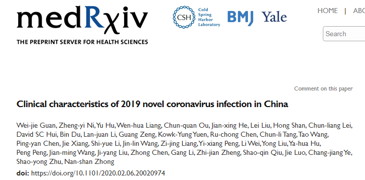 2020-02-09日鐘南山院士團(tuán)隊(duì)在medRxiv在線發(fā)表了目前為止,有關(guān)新型冠狀病毒感染最大樣本量的臨床研究,分析了來(lái)自全國(guó)31個(gè)省/直轄市的522家醫(yī)院共計(jì)1099例新型冠狀病毒感染患者的臨床特征。公共衛(wèi)生信息編輯部將主要研究結(jié)果總結(jié)分享,為臨床醫(yī)師診治新型冠狀病毒感染提供參考。
