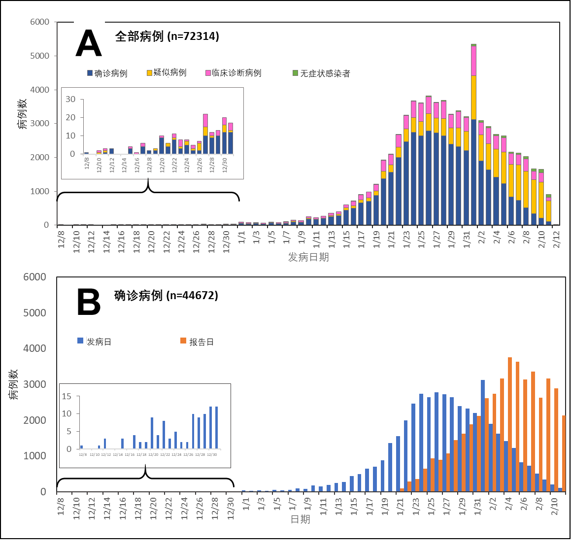 1月20日,經(jīng)國務(wù)院批準(zhǔn)同意,國家衛(wèi)健委決定將新型冠狀病毒肺炎納入法定傳染病乙類管理,但采取甲類傳染病的預(yù)防、控制措施,同時將該病納入國境衛(wèi)生檢疫法規(guī)定的檢疫傳染病管理。1月23日,武漢市疫情防控指揮部宣布全市城市公交、地鐵、輪渡、長途客運暫停運營,機場、火車站離漢通道暫時關(guān)閉。兩天后,中國政府做出了最高級別的承諾,動員一切力量遏止這一傳染病的流行。了解COVID-19傳播的流行病學(xué)特征,對于制定和實施有效的控制策略至關(guān)重要。為此,對截至2020年2月11日發(fā)現(xiàn)的所有COVID-19病例進行了流行病學(xué)特征描述和分析。