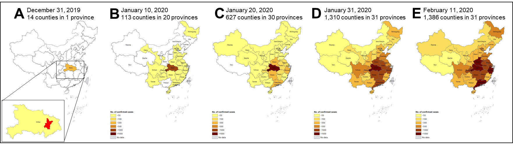 圖2 新型冠狀病毒肺炎從湖北向全國蔓延擴散