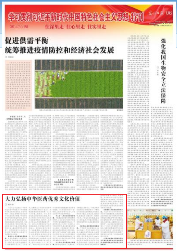 光明日報發(fā)文:大力弘揚中華醫(yī)藥優(yōu)秀文化價值