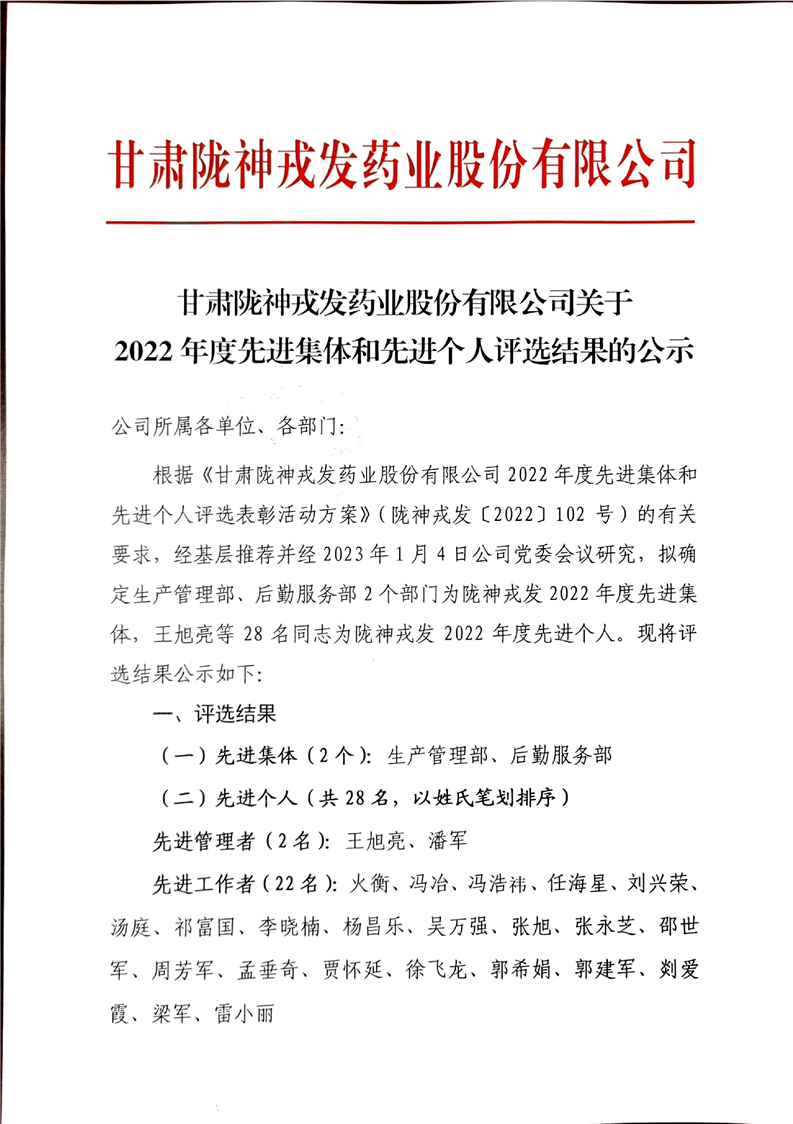 隴神戎發(fā)2022年度先進(jìn)集體和先進(jìn)個人評選結(jié)果的公示