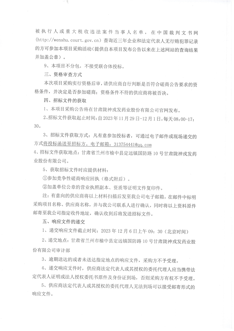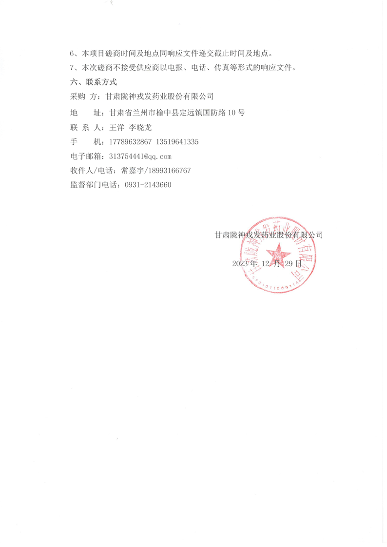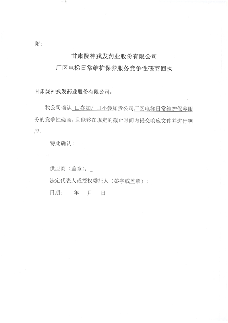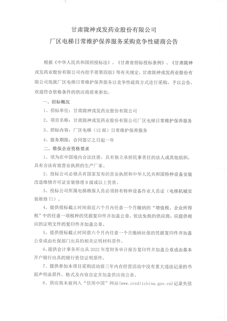 甘肅隴神戎發(fā)藥業(yè)股份有限公司廠區(qū)電梯日常維護保養(yǎng)服務(wù)采購競爭性磋商公告