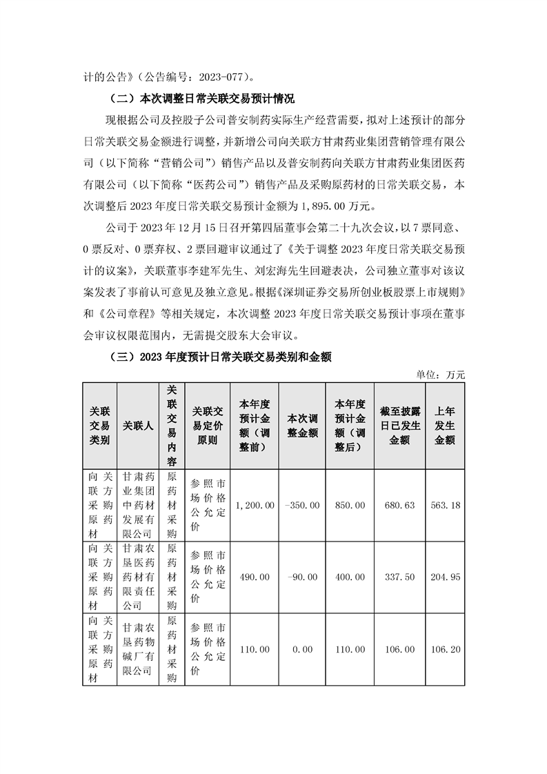 關(guān)于調(diào)整2023年度日常關(guān)聯(lián)交易預計的公告
