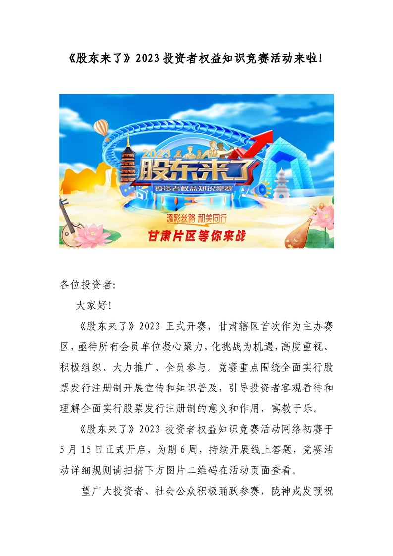 《股東來(lái)了》2023投資者權(quán)益知識(shí)競(jìng)賽活動(dòng)來(lái)啦!