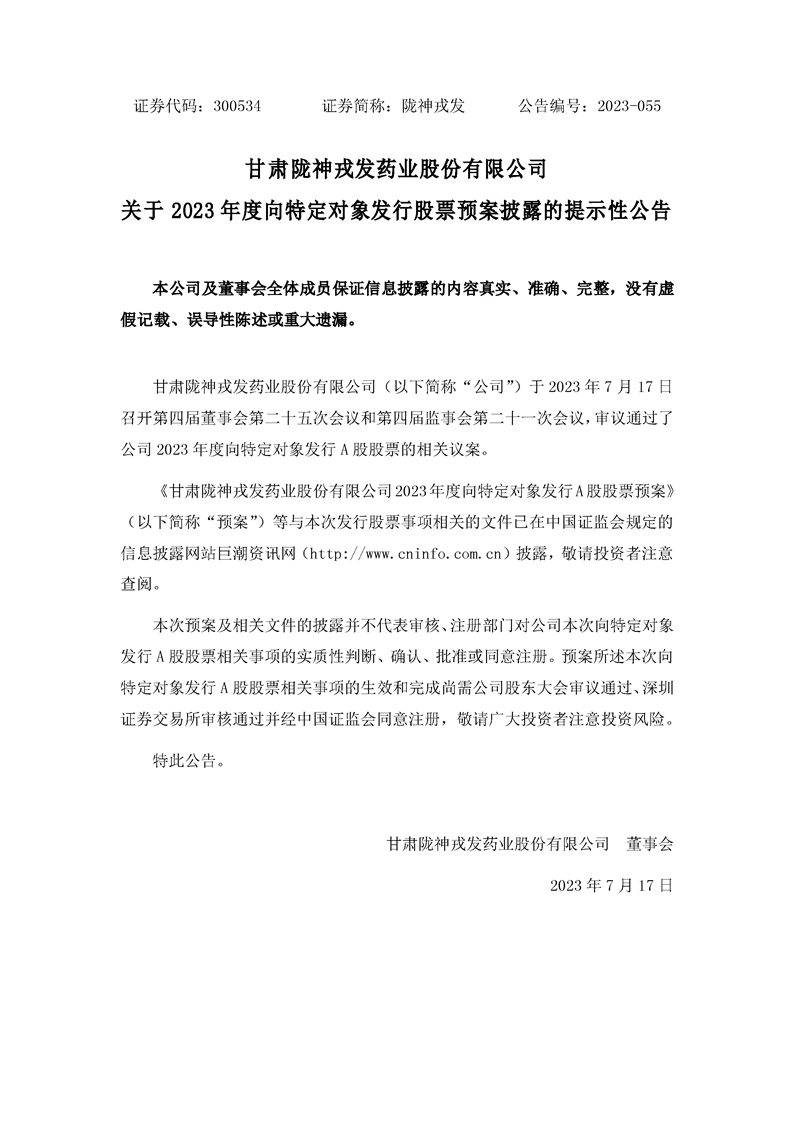 關(guān)于2023年度向特定對(duì)象發(fā)行股票預(yù)案披露的提示性公告