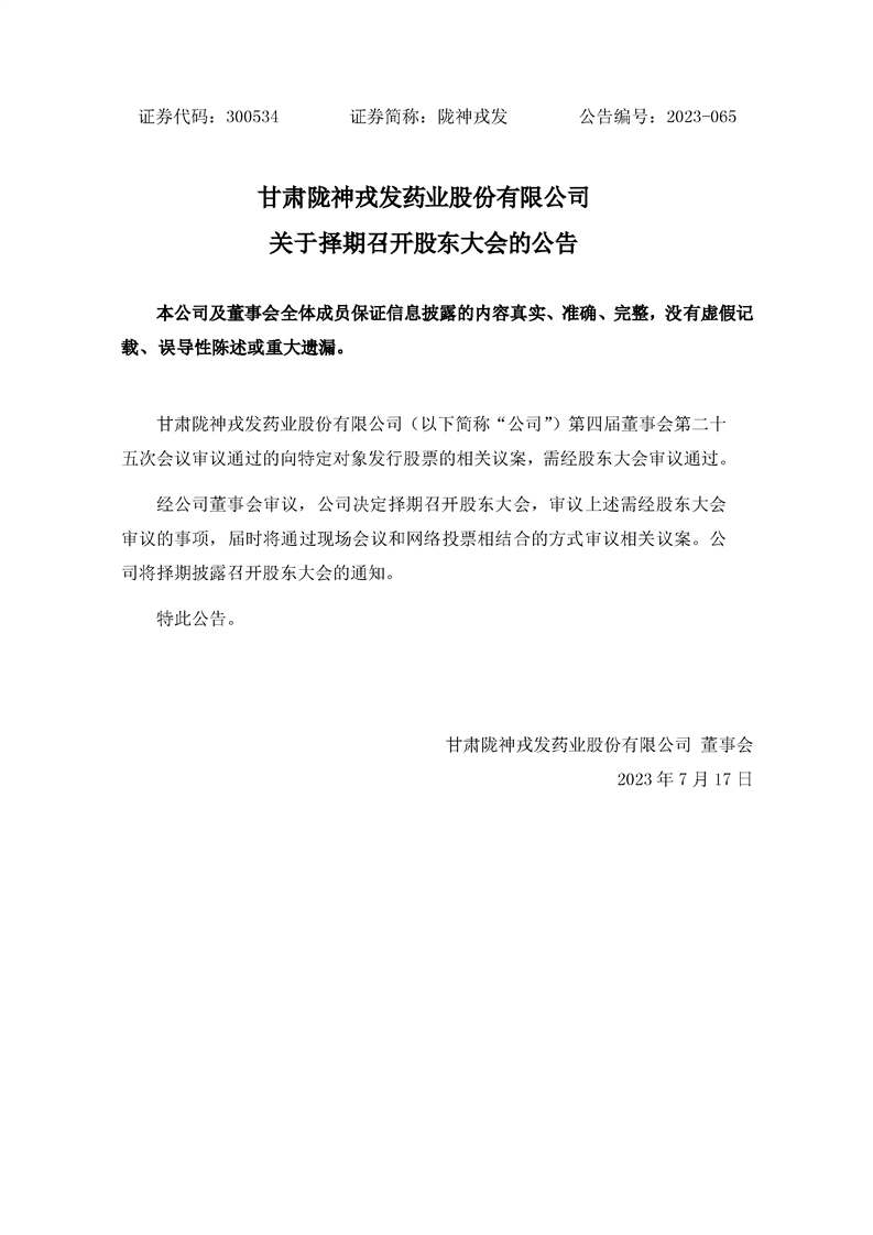 關(guān)于擇期召開股東大會的公告