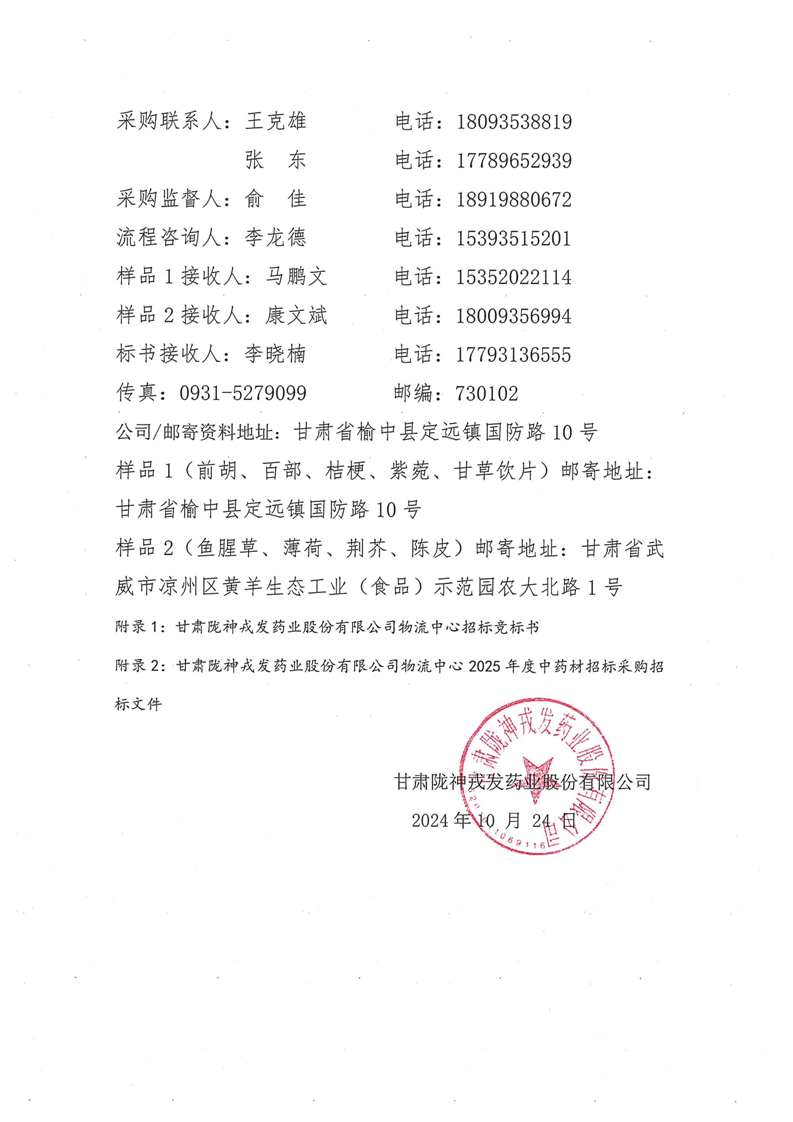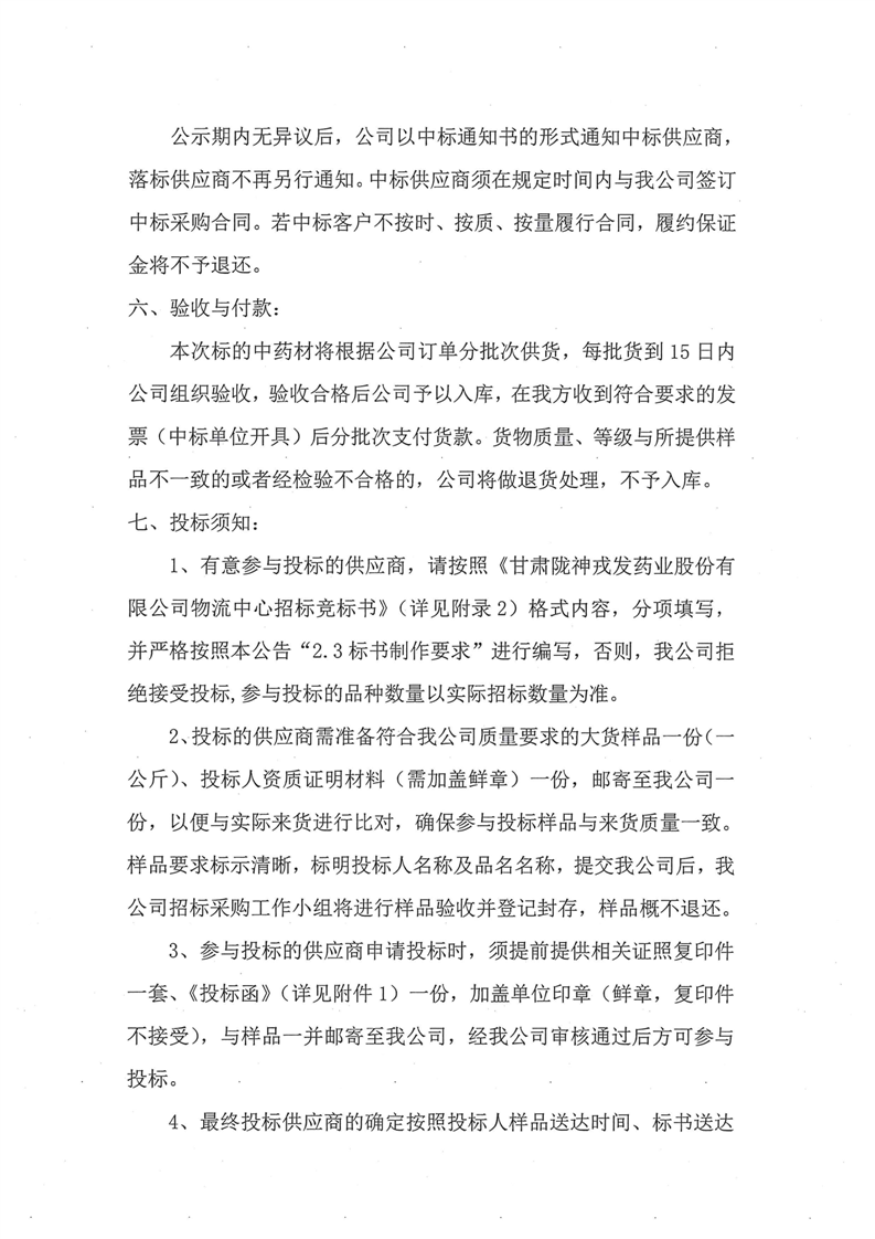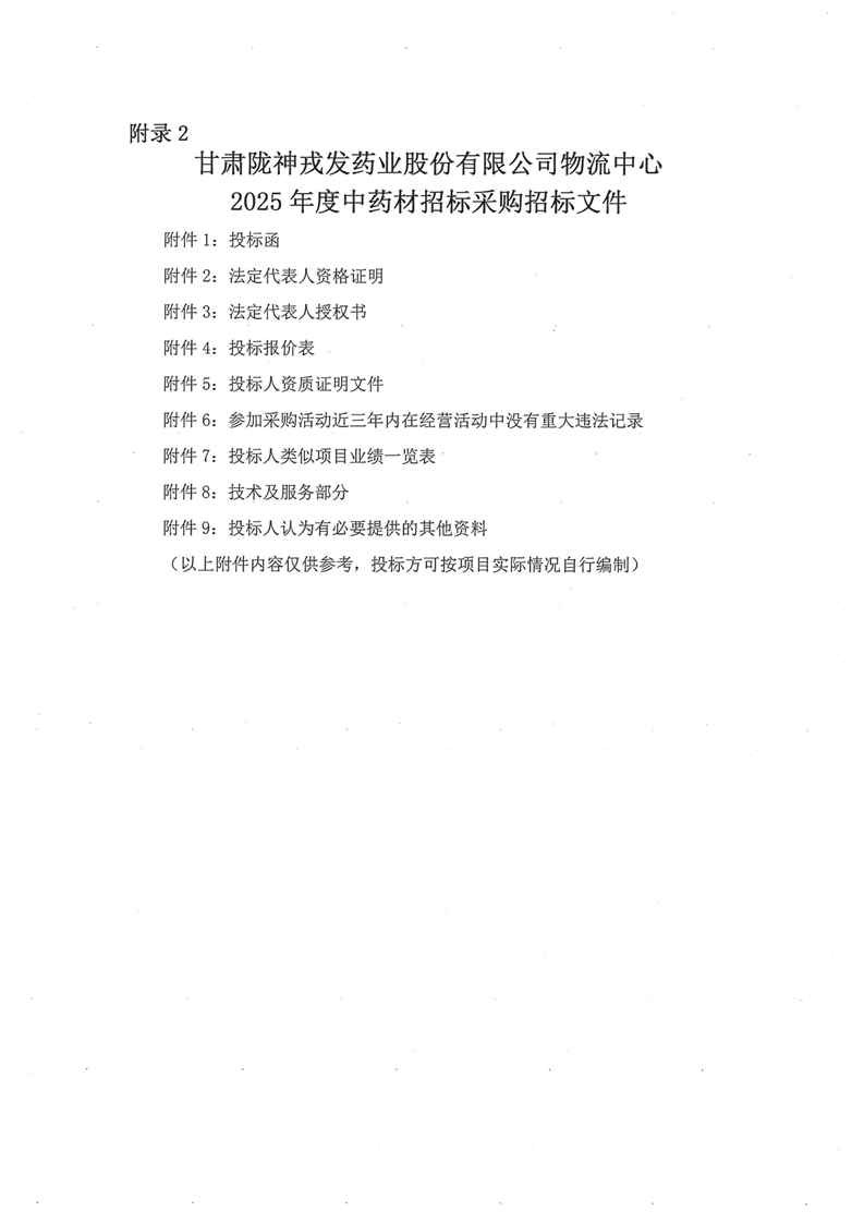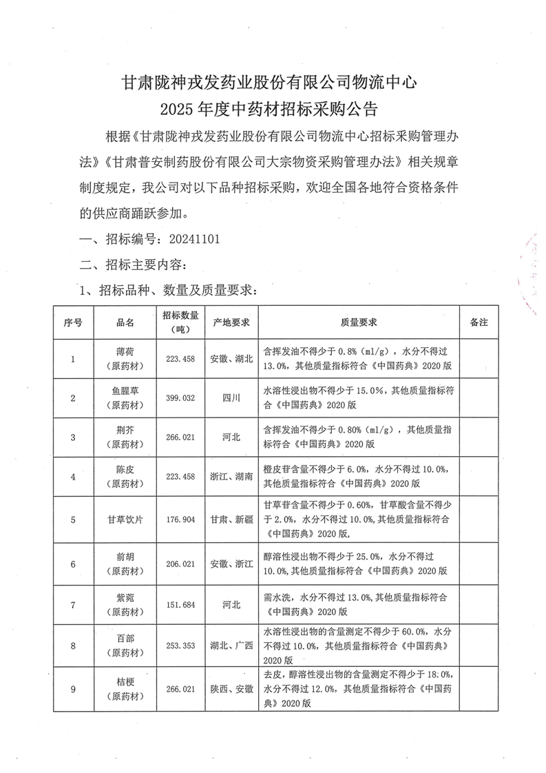 甘肅隴神戎發(fā)藥業(yè)股份有限公司物流中心2025 年度中藥材招標(biāo)采購公告